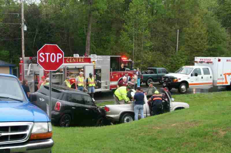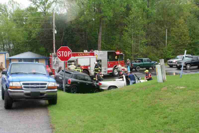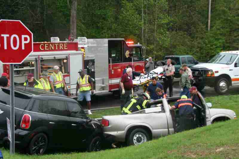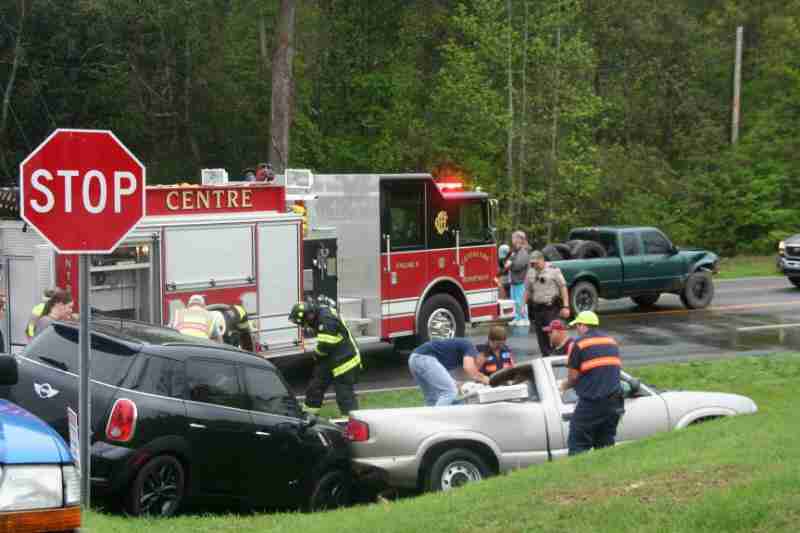 Two people were hurt in a three-vehicle accident taking place in Centre, shortly after 10:00 Monday morning.
