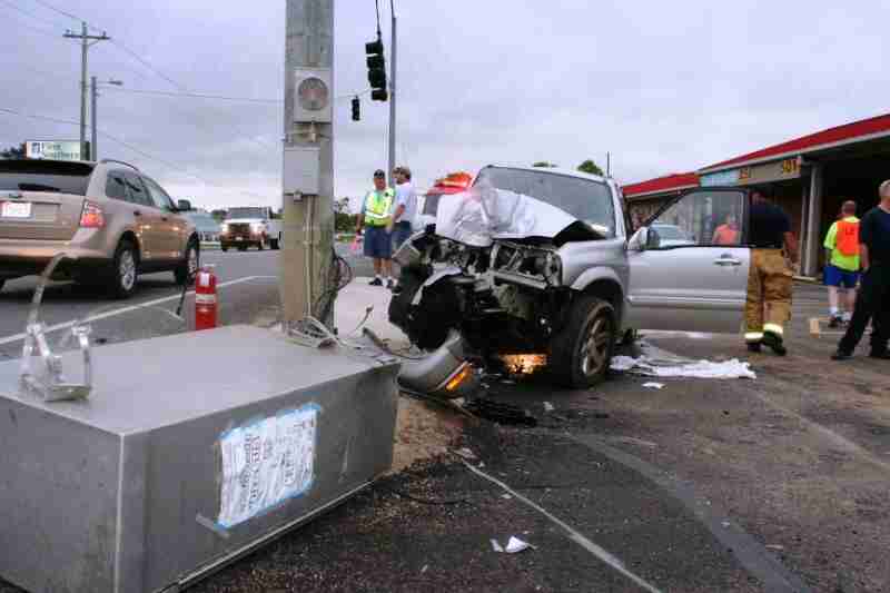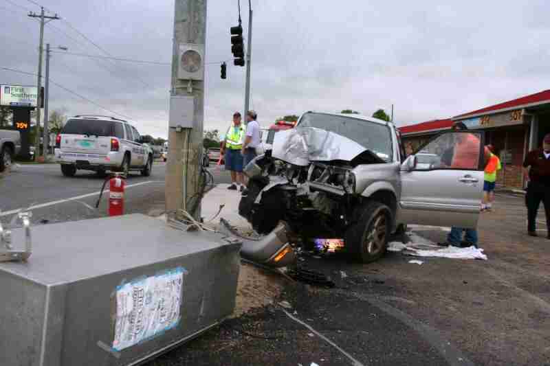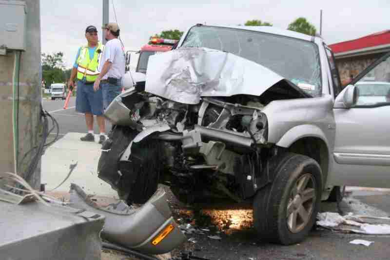Burrell’s 2002 Suzuki XL7 crashed into a metal pole directly in front of Leesburg Town Hall around 7:20am.