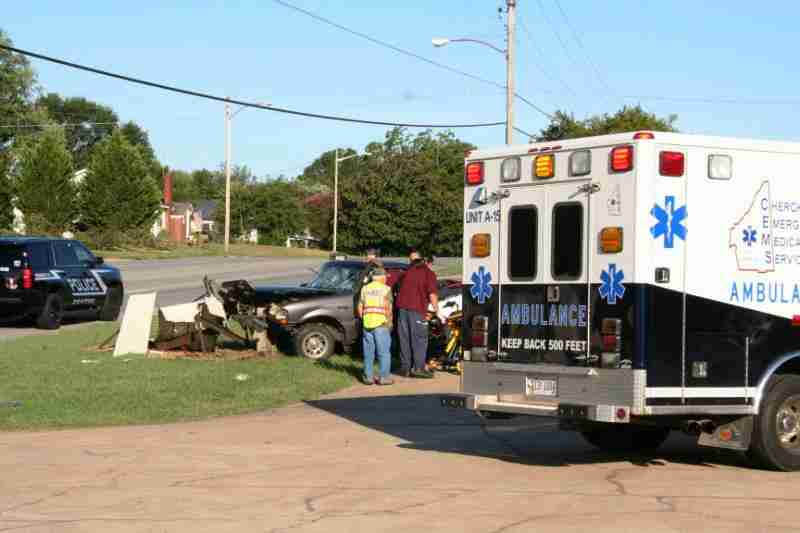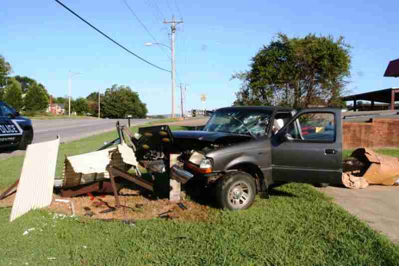 Centre Police and other emergency personnel responded to the crash just before 7:30am to find a pickup truck that was severely damaged after striking a steel beam behind a signpost on the roadside alongside West Main Street.