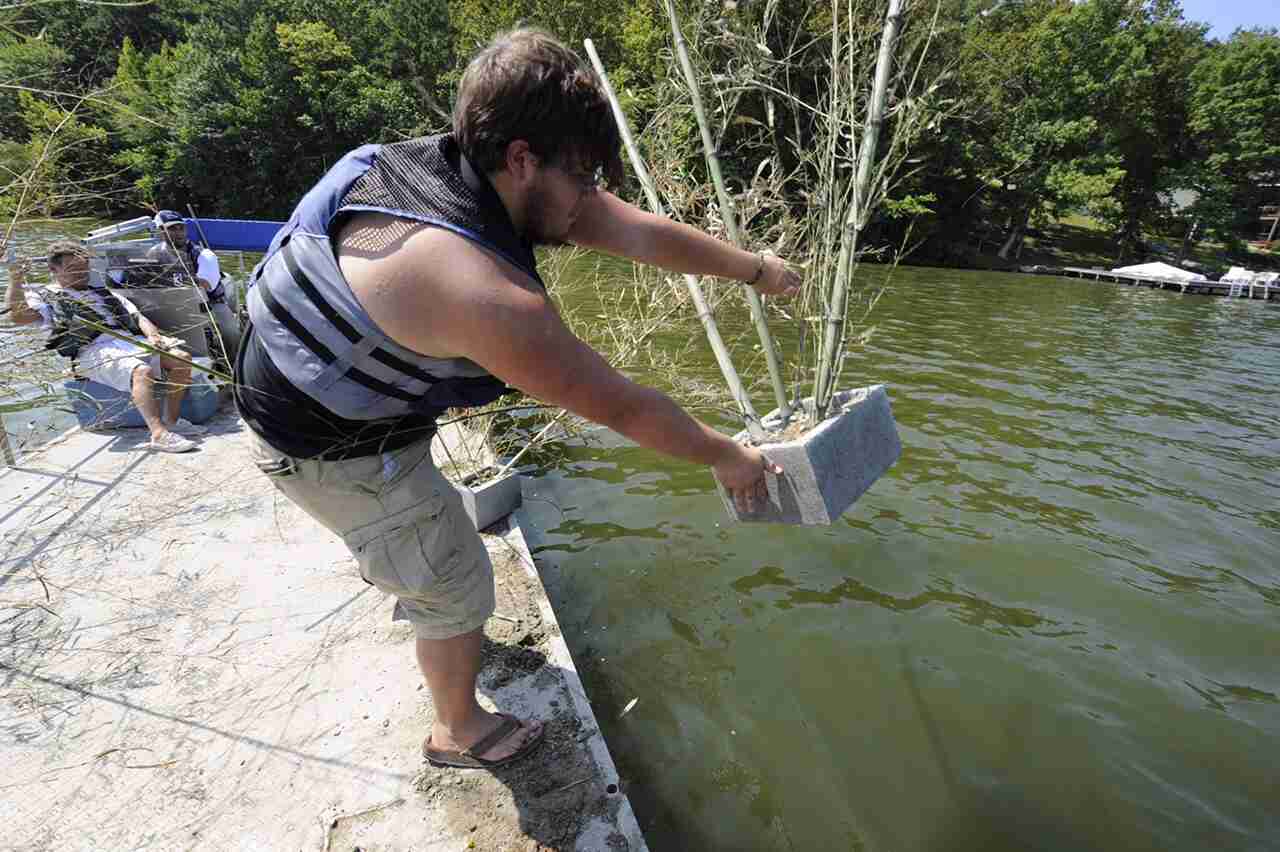 The high school anglers teamed with several local fishing guides to build the fish attraction devices by taking lengths of bamboo and placing them in concrete blocks filled with mortar, and, after drying those devices were loaded onto Alabama Power boats and then placed in strategic locations in the lake. The devices were placed in the lake near Little River Marina, and took several hours to deploy.