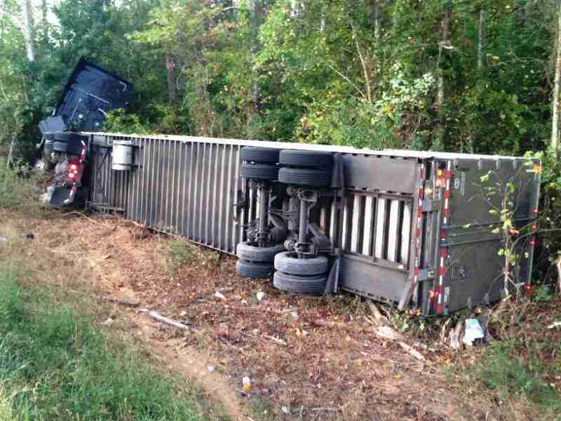 The driver, identified as 55 year old Roger Lawson of Florence, South Carolina, was trapped inside the rig but fortunately, was not hurt.