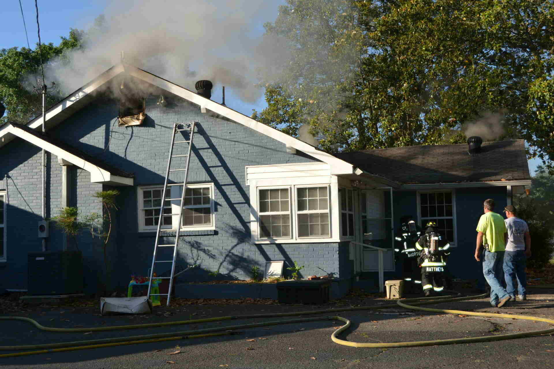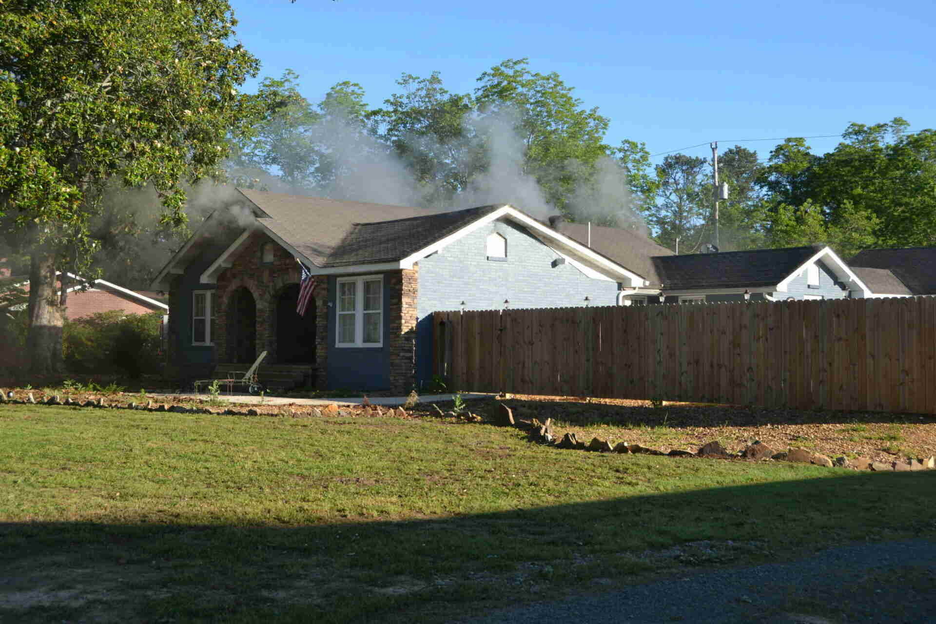 As firefighters arrived on the scene they were met by smoke billowing from the attic area of the structure, however there were no flames visible. It appeared no one was in the home as firefighters entered the structure through a door at the rear of the residence.
