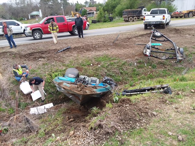 There was a two-vehicle accident taking place at approximately 11:50 on Monday morning, at the intersection of Highway 411 north and County Road 29 – involving a 2003 GMC and a 2005 Ford with one of those vehicles pulling a trailer hauling a small boat. According to the Alabama Law Enforcement Agency accident report, neither the driver of the GMC, listed as a resident of Hiram, Georgia; nor the driver of the Ford, a 16 year old resident of Piedmont – was hurt in the crash.