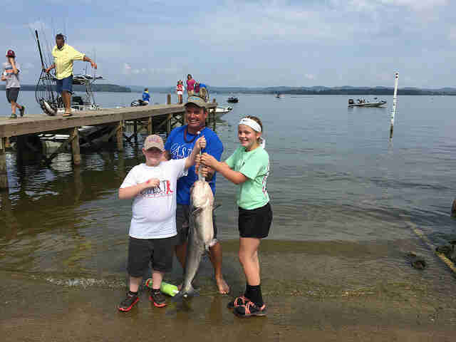 Participants are hosted at a local lake, or body of water, supplied with a fishing rod & reel, t-shirt, hat, and tackle box, partnered with an experienced volunteer angler and escorted onto a boat where, with the supervision of a parent or guardian, they are shown proper fishing techniques and receive natural resources education. Participants and volunteers all then return from their morning fishing excursion to a BBQ lunch and an awards ceremony.