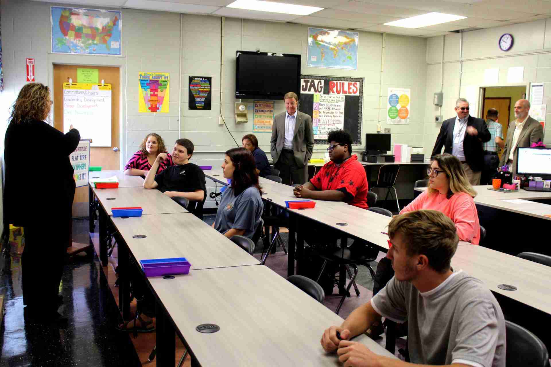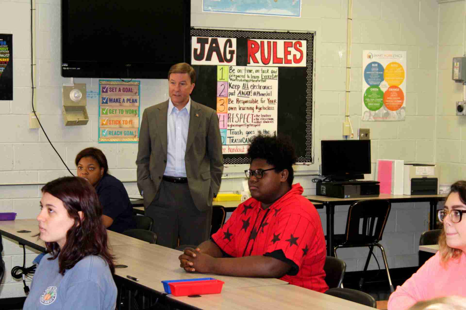 Congressman Mike Rogers, along with Sherri Rollins from his Anniston Office, paid a visit to the Cherokee County Career & Tech Center last Friday (October 19th), to speak with Career Tech Center Principal Brett Keasler and the instructors about their JAG program, which has thrived at the school.