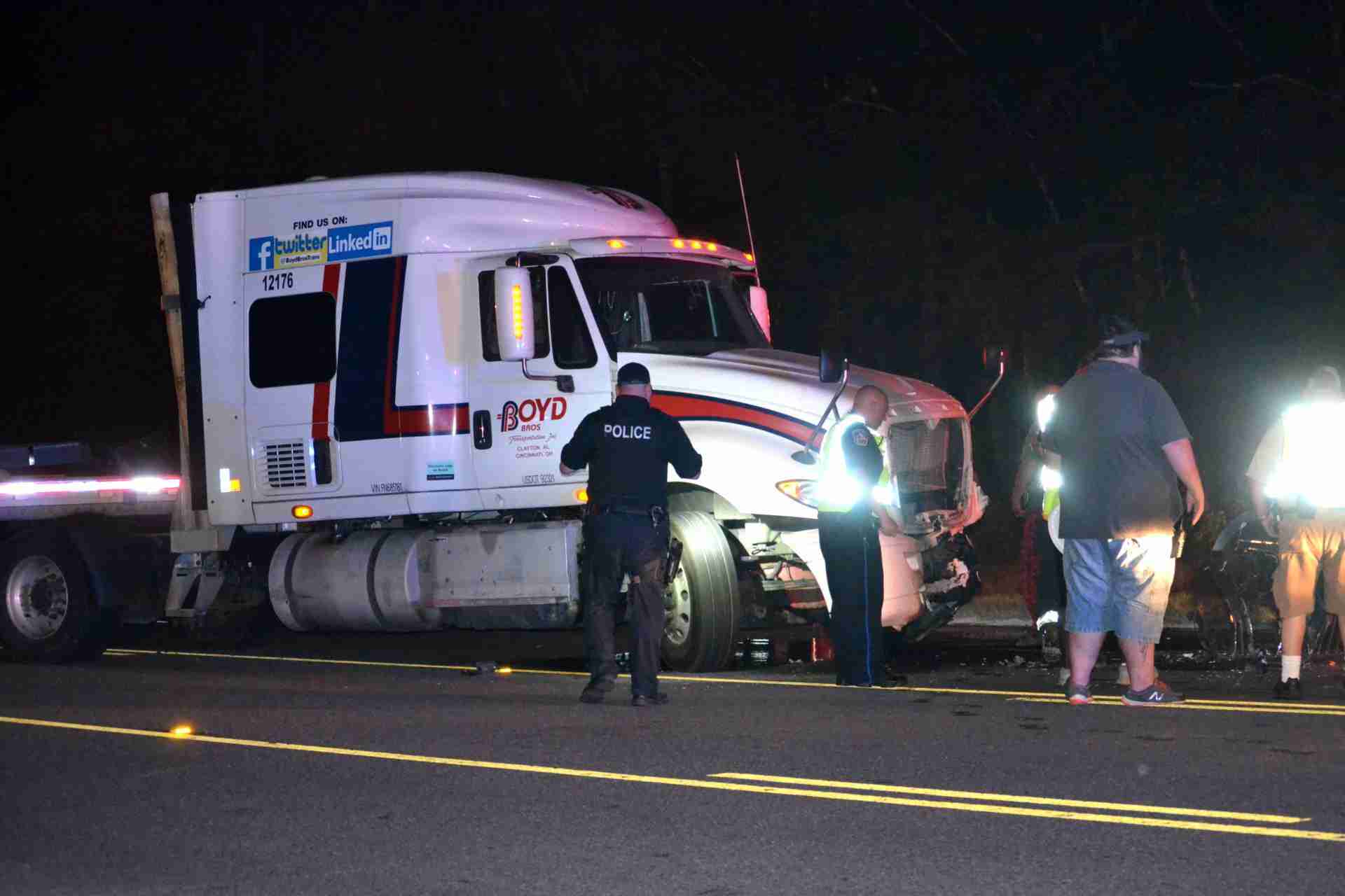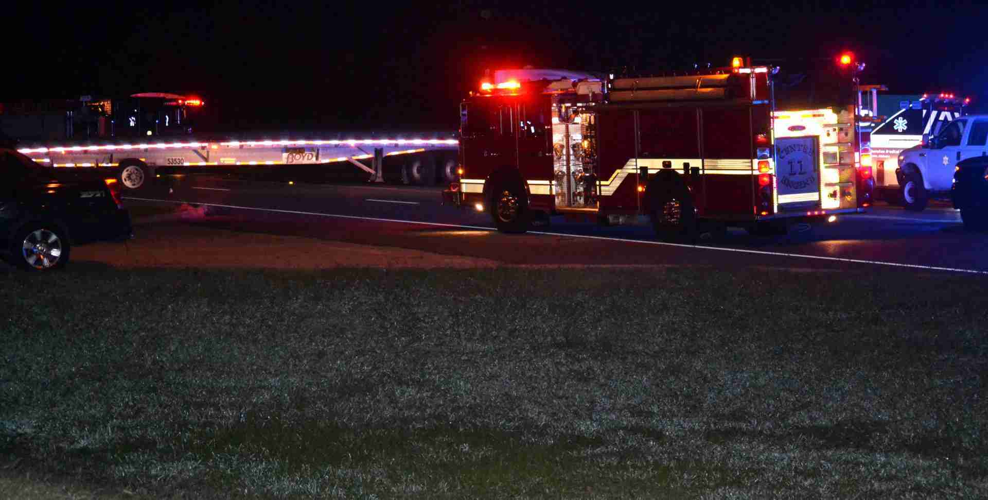 The trailer of the big rig was stretched sideways across the roadway blocking traffic in both directions as emergency personnel responded to the scene and crews worked to clear away debris from the wreck.