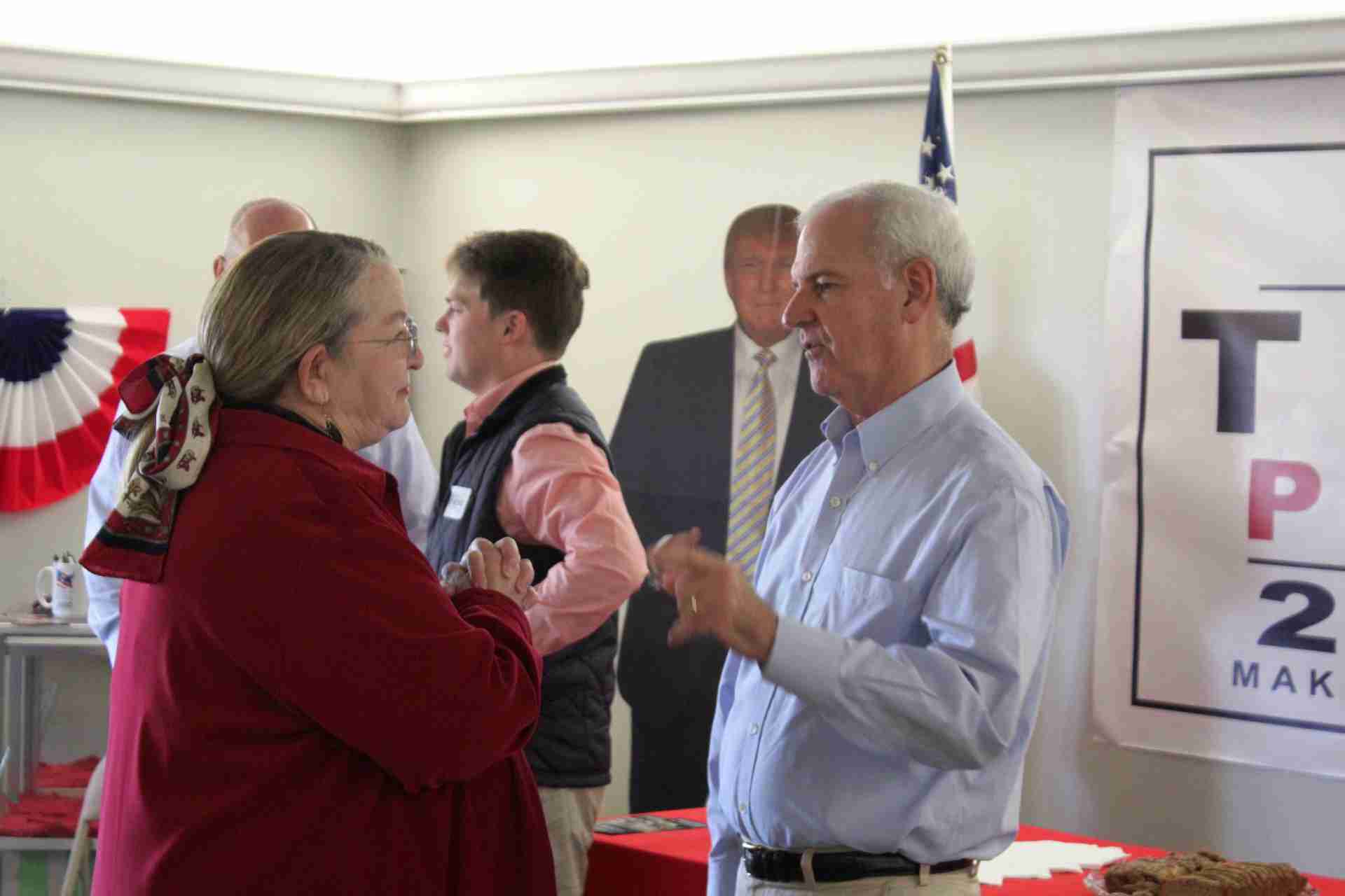 The Cherokee County Republican Party Headquarters was packed Friday morning during a visit from Representative Bradley Byrne, who is a candidate for Senate in the 2020 race.