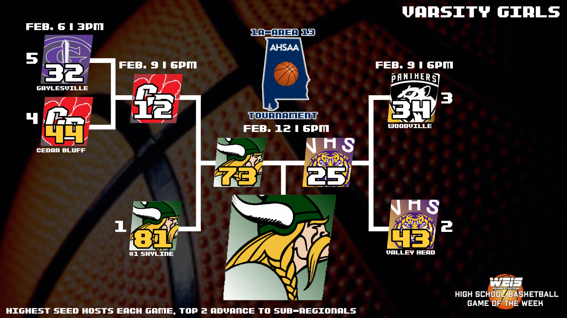 Class 1A, Area 13: Gaylesville 48 – Valley Head 57