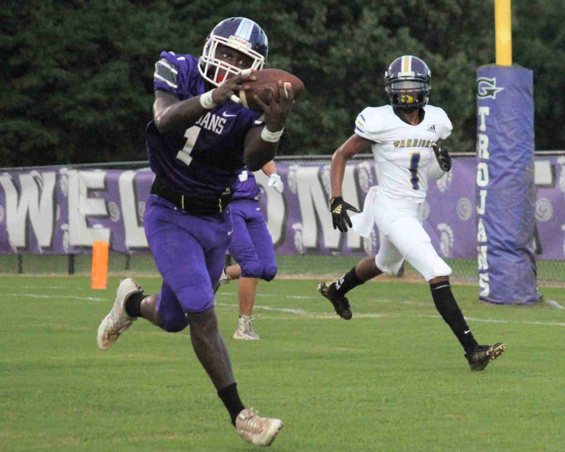 Keylon Higgins and Michael Reynolds were recognized for their efforts in a shootout at Class 1A, Region 7 rival Valley Head. Higgins accumulated 224 rushing yards and two touchdowns on 12 carries and returned a kickoff 70 yards for another score in the Trojans’ 64-42 loss.