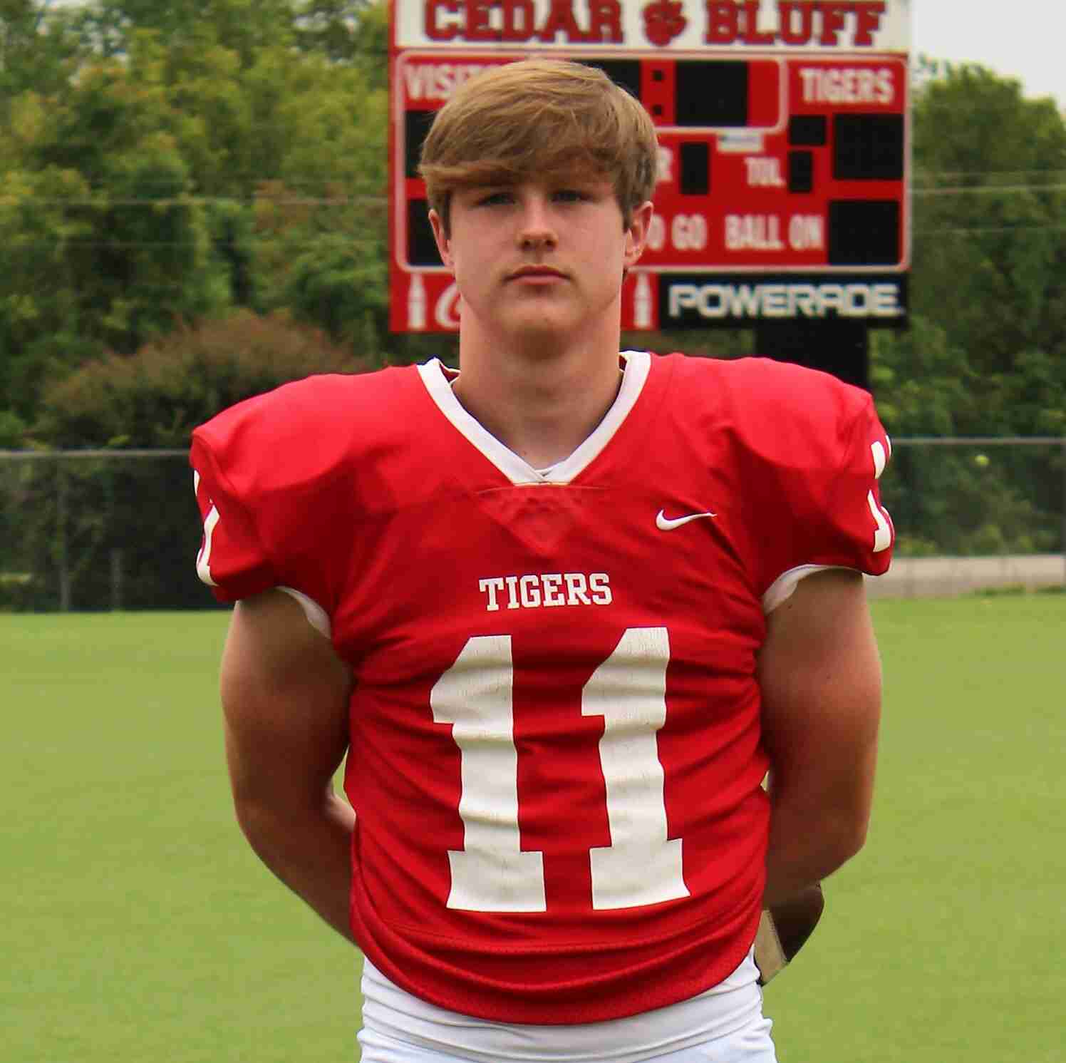 Leek returned in overtime from an ankle injury suffered in the third quarter to lead the Tigers to a 29-28 victory over Gaylesville. His fourth-and-goal 10-yard pass to receiver Eli McFry tied the game at 28 all. Carter Dillingham booted the winning extra point to seal the Class 1A, Region 7 win.