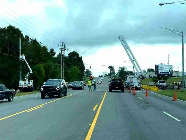 A fatal accident involving a log truck last month damaged the utility poles supporting the traffic light, leading to the entire system being taken down, and Northwood Drive being closed – until new lights could be obtained and put in place.