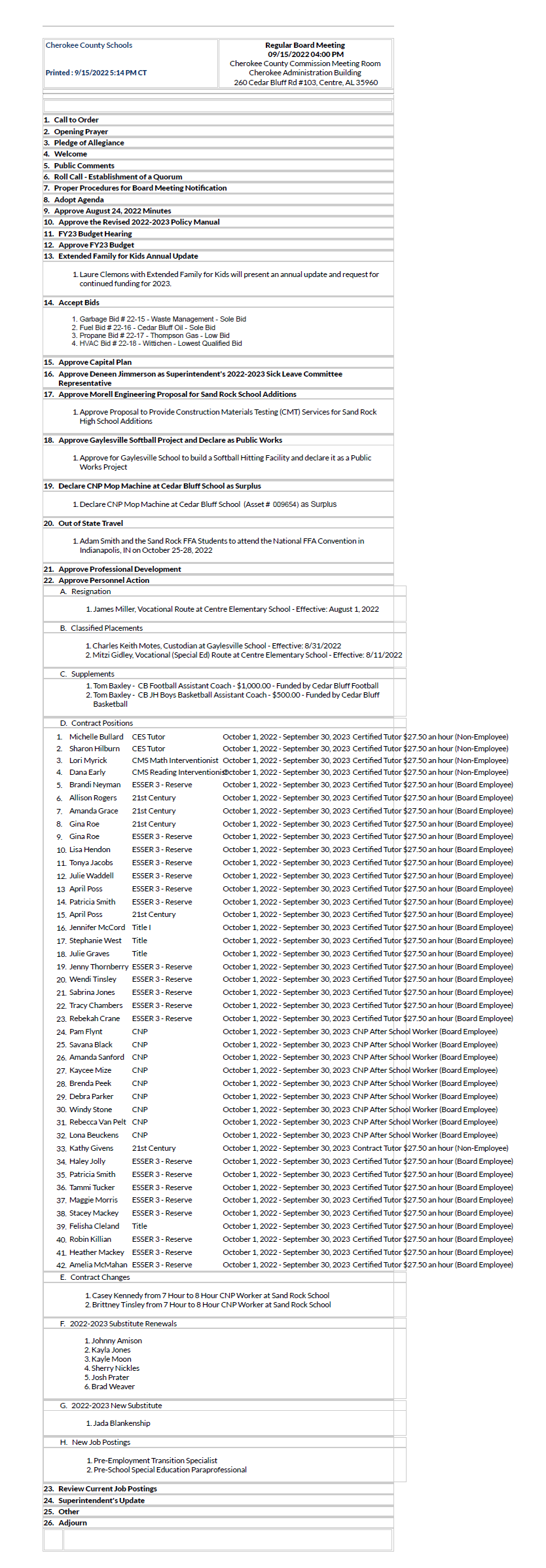Cherokee County Board of Education Meeting