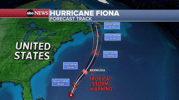 (NEW YORK) — Hurricane Fiona, now a monster Category 4 storm with 130 mph winds, is taking aim on Bermuda as hard-hit Puerto Rico looks to recover.