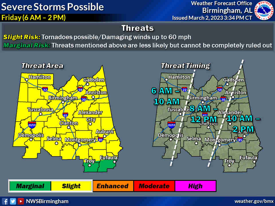 move across Central Alabama on Friday with a severe threat. Aside from