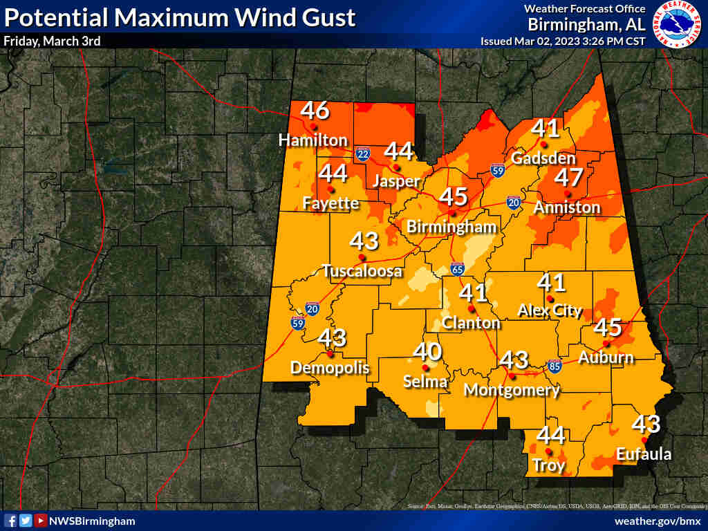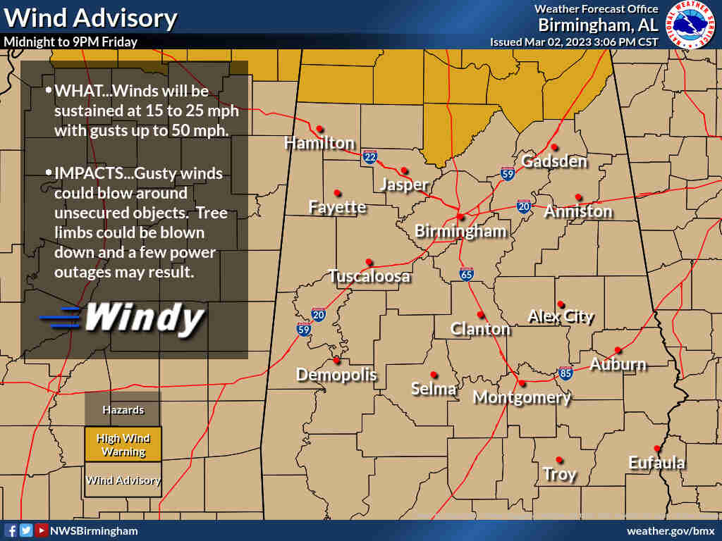 Go ahead and close your patio umbrella and secure any other loose outdoor items because it will become very windy across the area tonight thru tomorrow! We may see non-tstorm wind gusts as high as 50 mph! This could lead to sporadic tree fall and intermittent power outages. #alwx