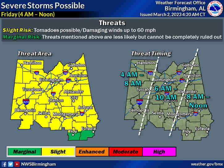 Minor adjustments to the Slight risk area.Highlights: Where: * All of Central Alabama. When: