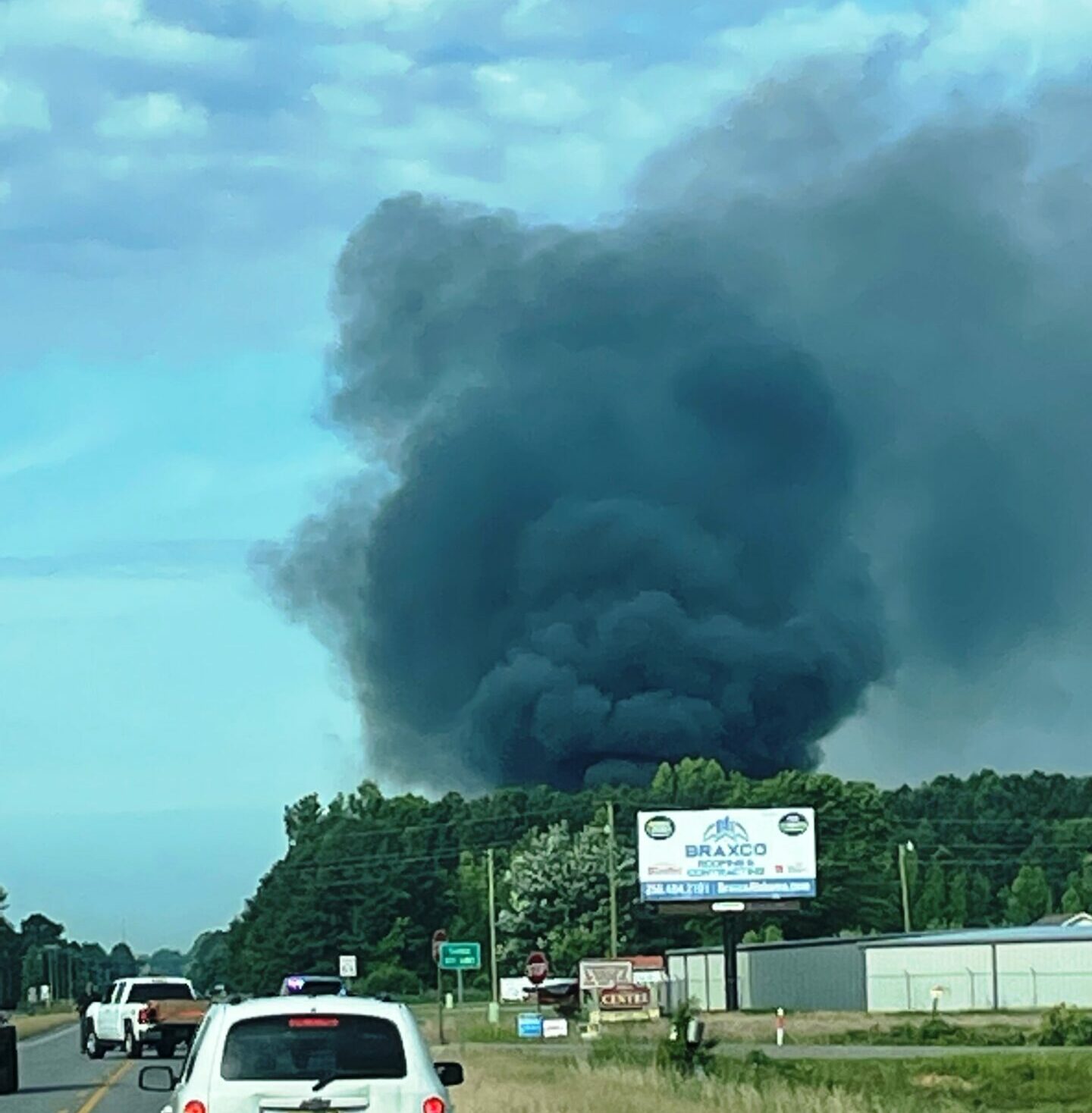 Motorists should be cautious, as water hoses are reportedly across areas of Highway 9 (Cedar Bluff Road) between Blackwell’s Crossroads and Powell Drive, as fire departments battle the blaze.