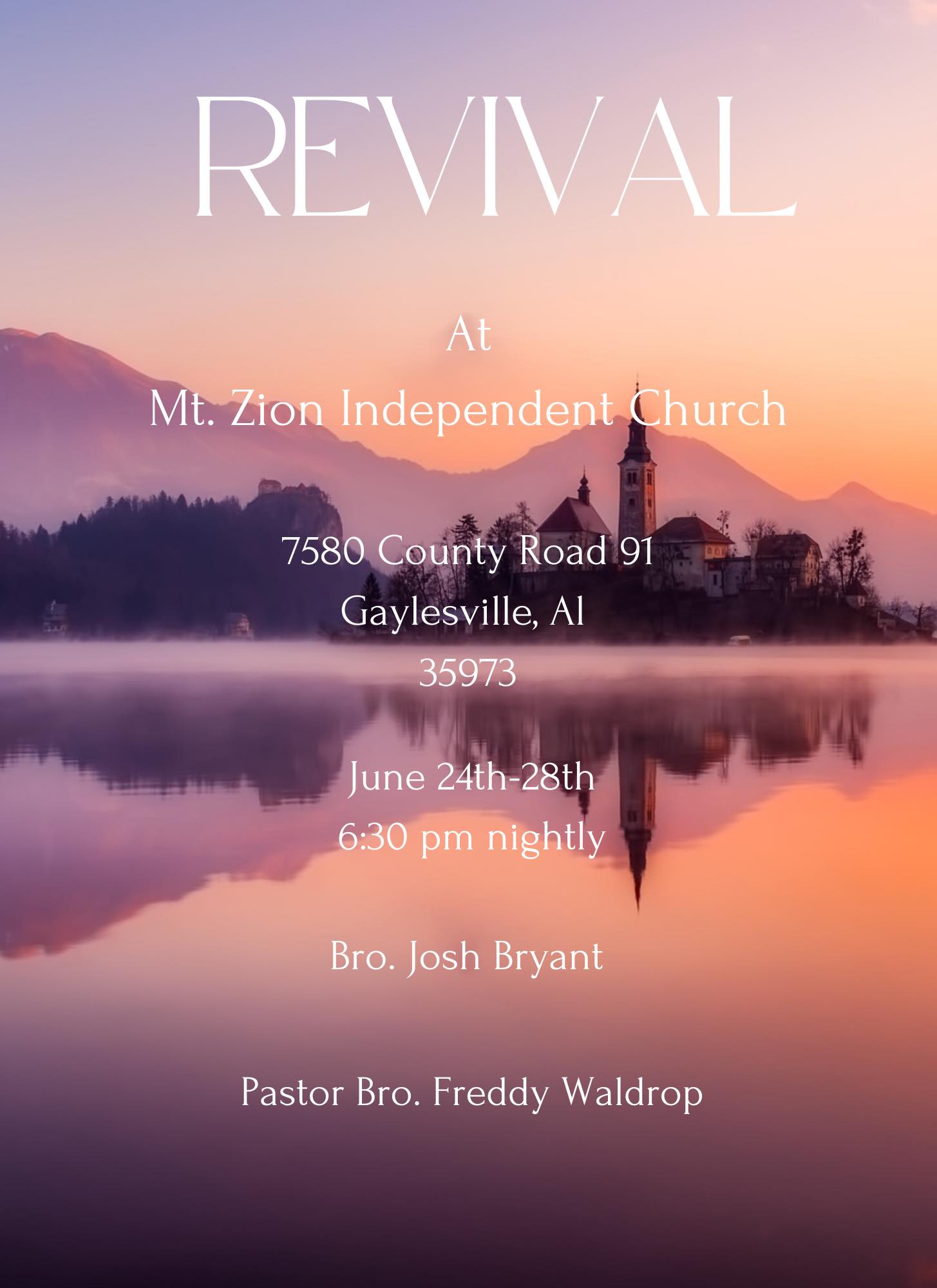 Mt. Zion Independent Church and Pastor Freddy Waldrop invite you to Homecoming on Sunday, June 23rd.