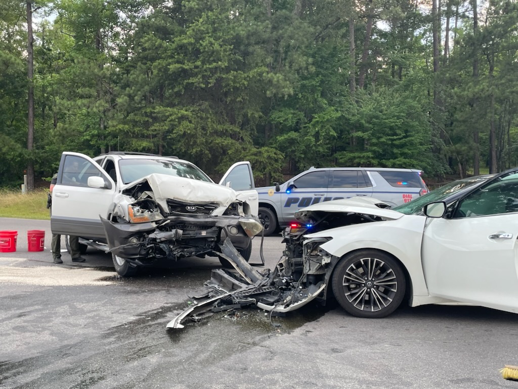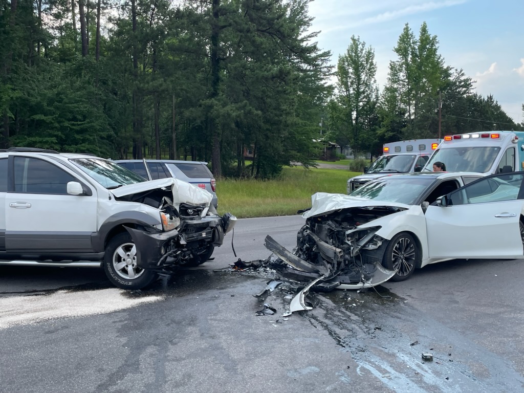 A two-vehicle wreck resulted in two people being hurt Sunday afternoon in Cherokee County.