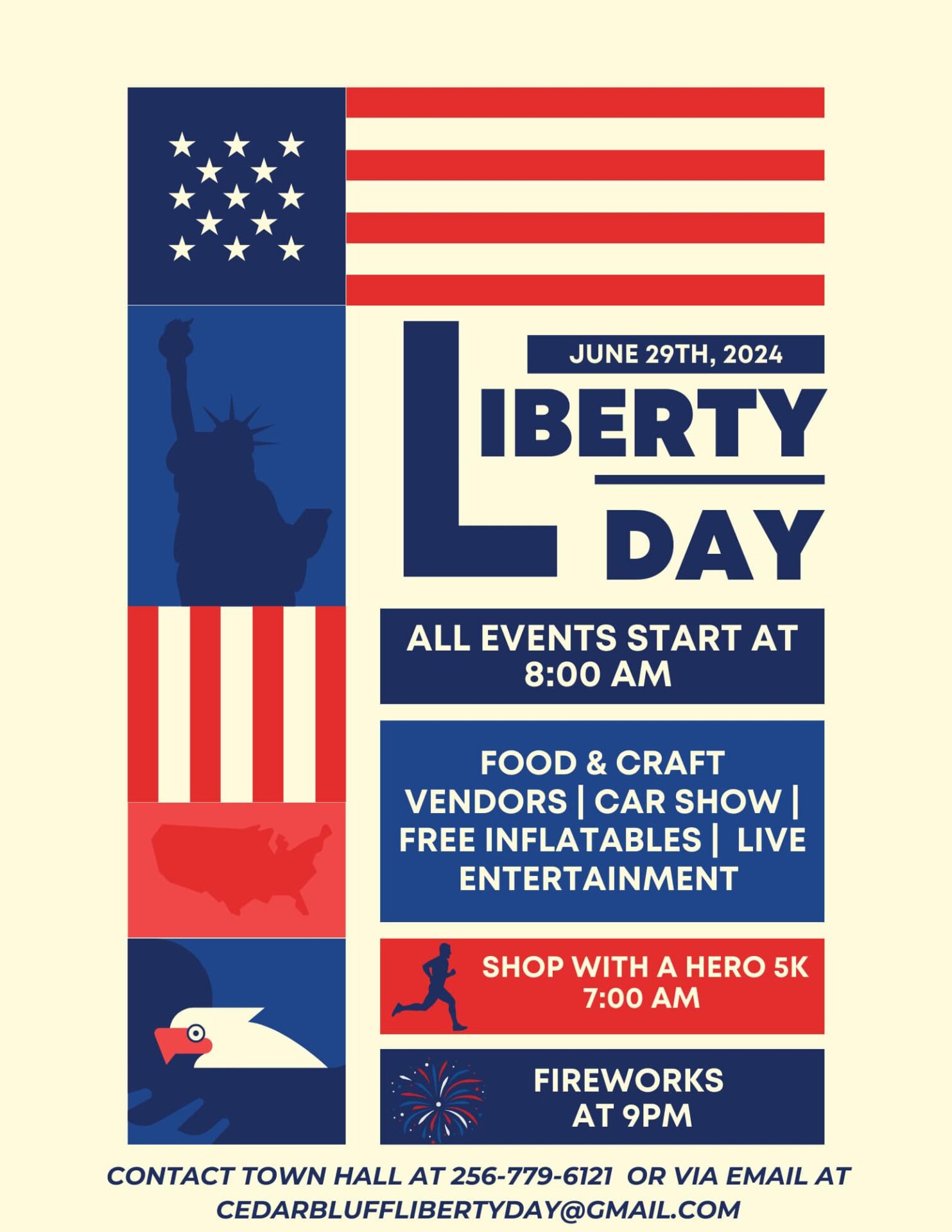 According to Cedar Bluff Police Chief Jeremy Stepps, Liberty Day activities will start at 7:00am this Saturday, June 29th (2024).