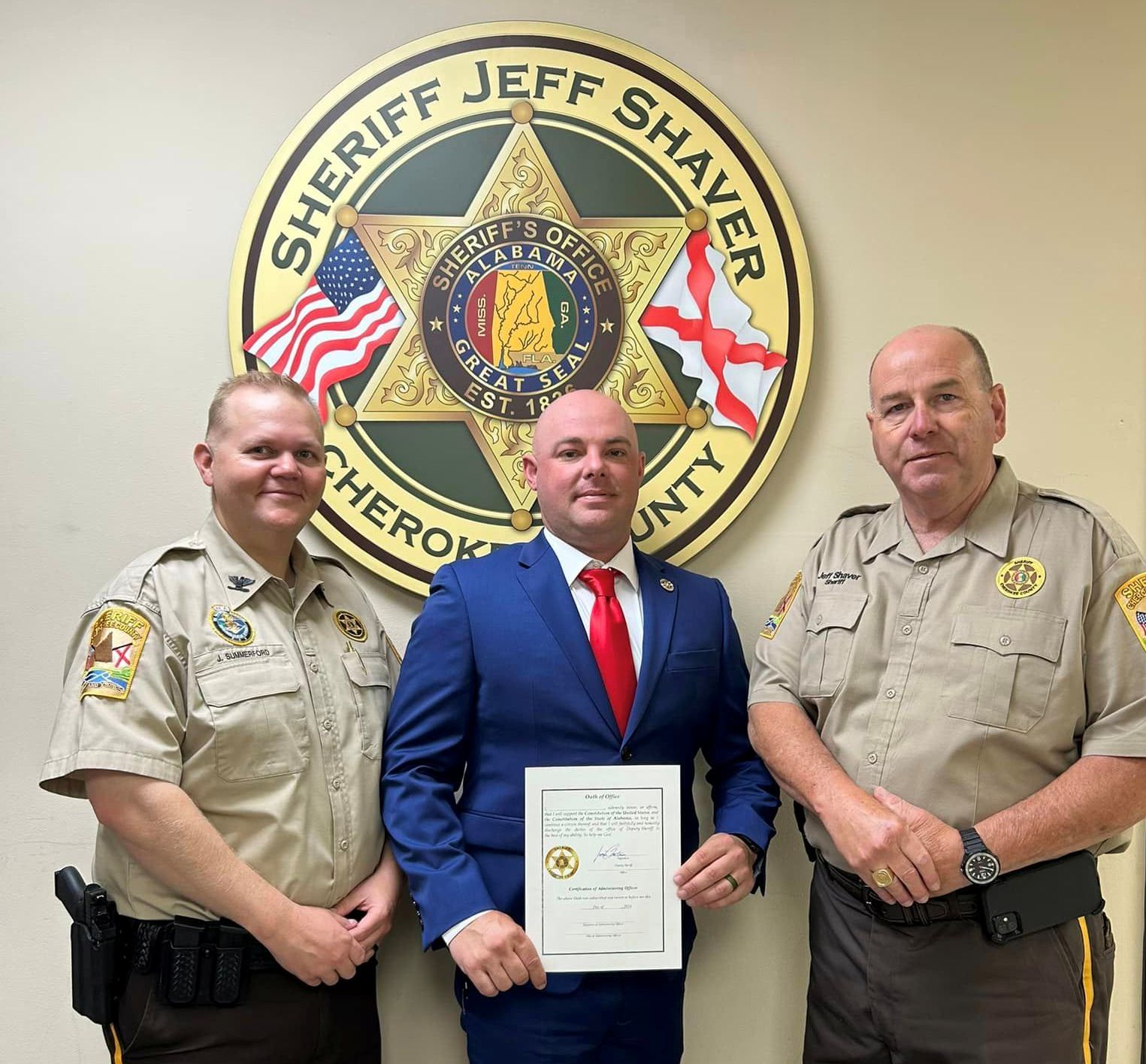 Cherokee County Sheriff Jeff Shaver and Chief Deputy Josh Summerford – recently welcomed the former Leesburg Police Chief, Jamie Chatman – to his new post at the Sheriff’s Office.