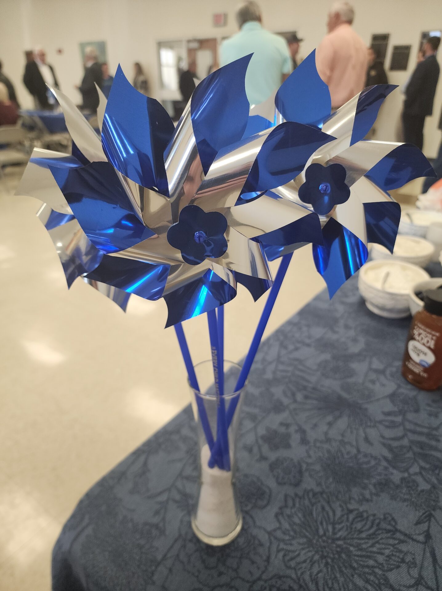 Blue, or blue and silver Pinwheels were visible throughout the room, and you may have noticed them near schools, homes, businesses, courthouses or other places in your community. The pinwheels serve as a visual reminder of the healthy and happy childhood all children deserve. They are also a reminder that not all children unfortunately, have that opportunity and how we must stand to protect children, and support those who have been victim’s of abuse.
