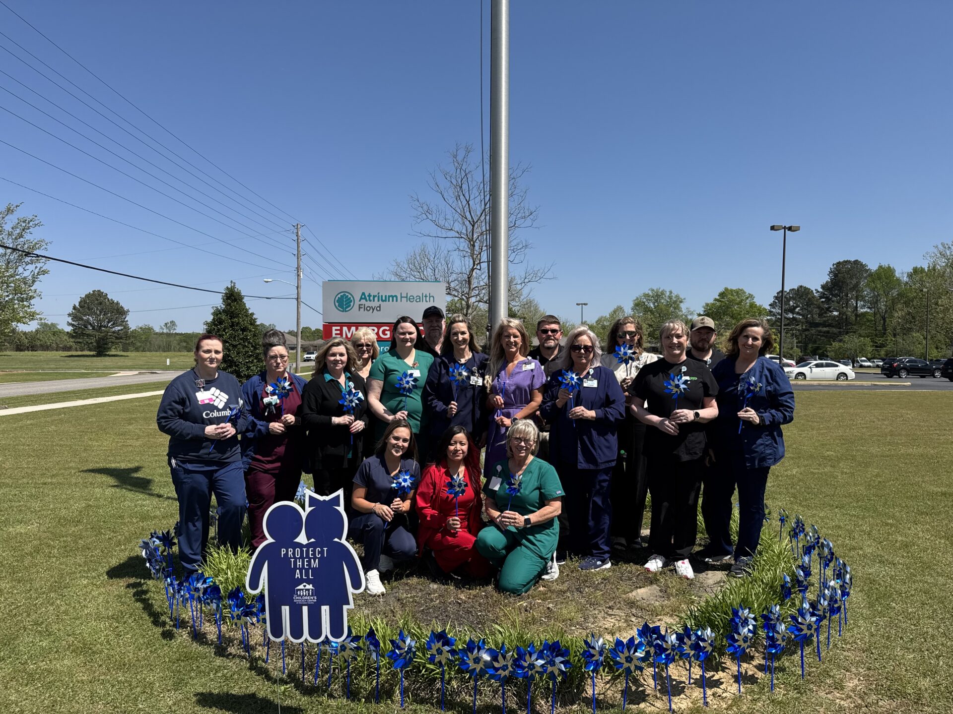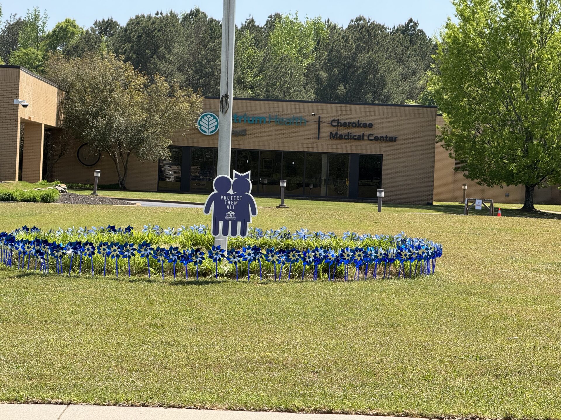 CENTRE, Ala. – In honor of National Child Abuse Prevention Month, Atrium Health Floyd Cherokee Medical Center has planted a vibrant display of blue pinwheels in front of the hospital to raise awareness about child abuse prevention and show solidarity with children and families across Cherokee County.