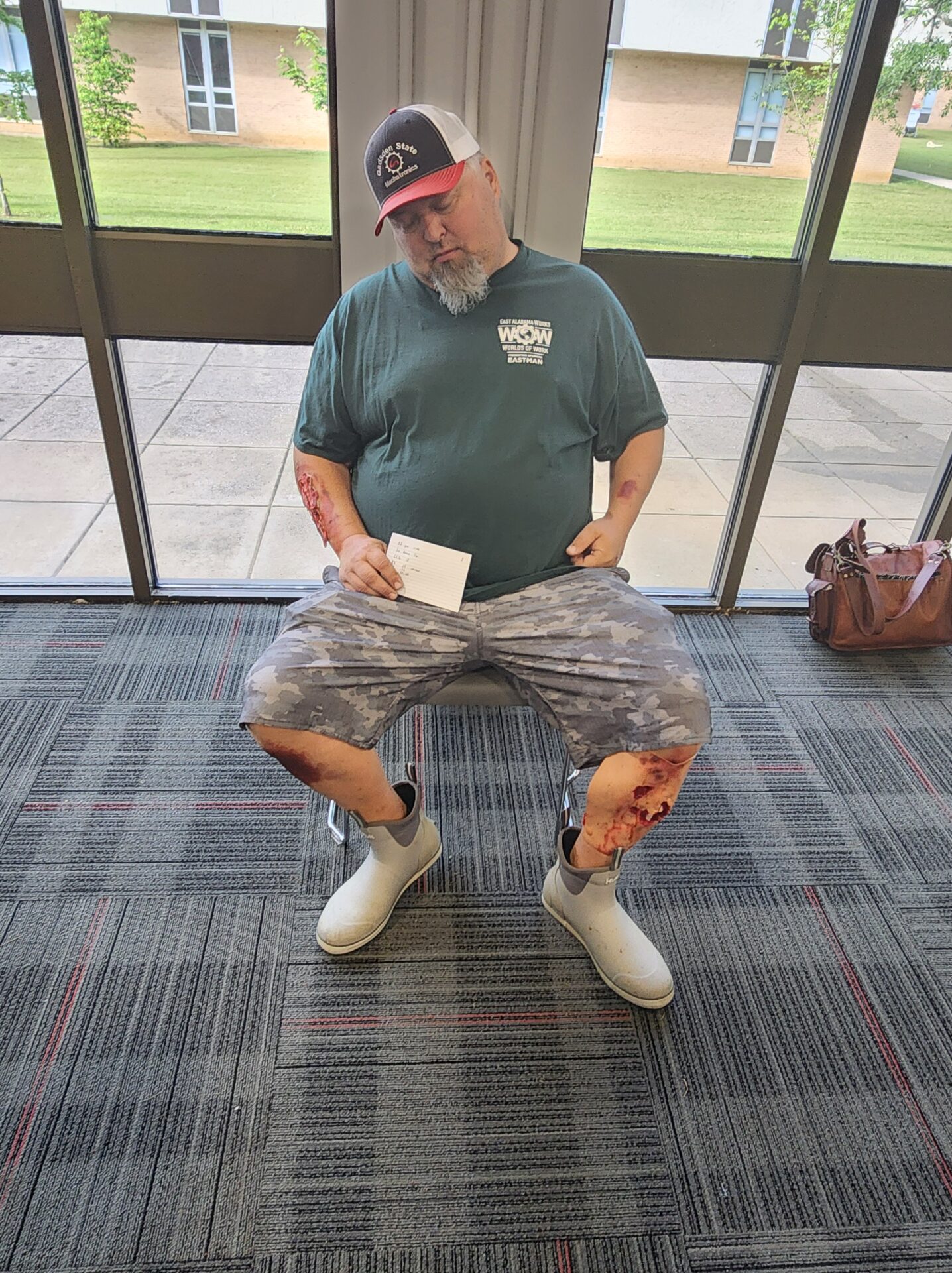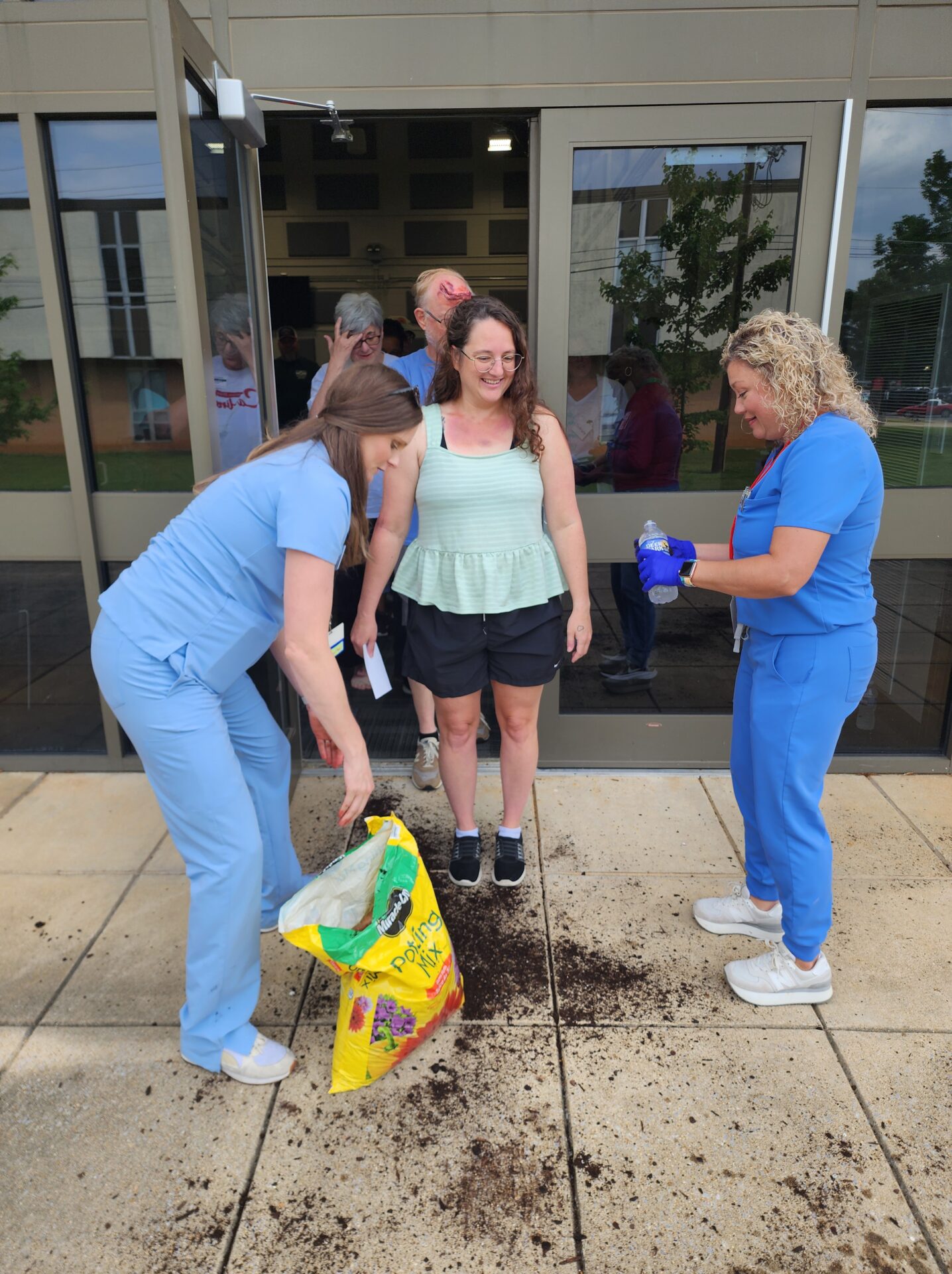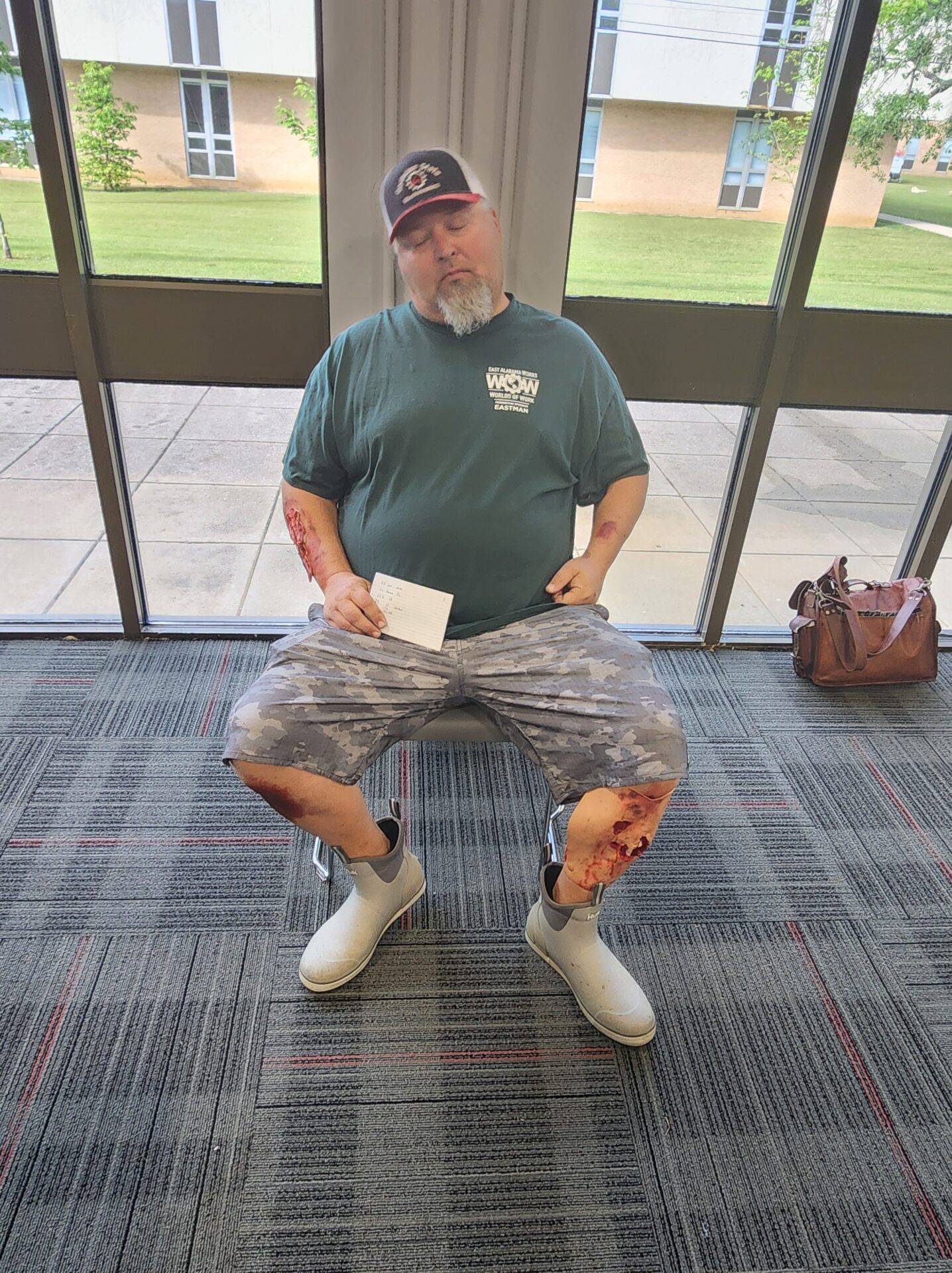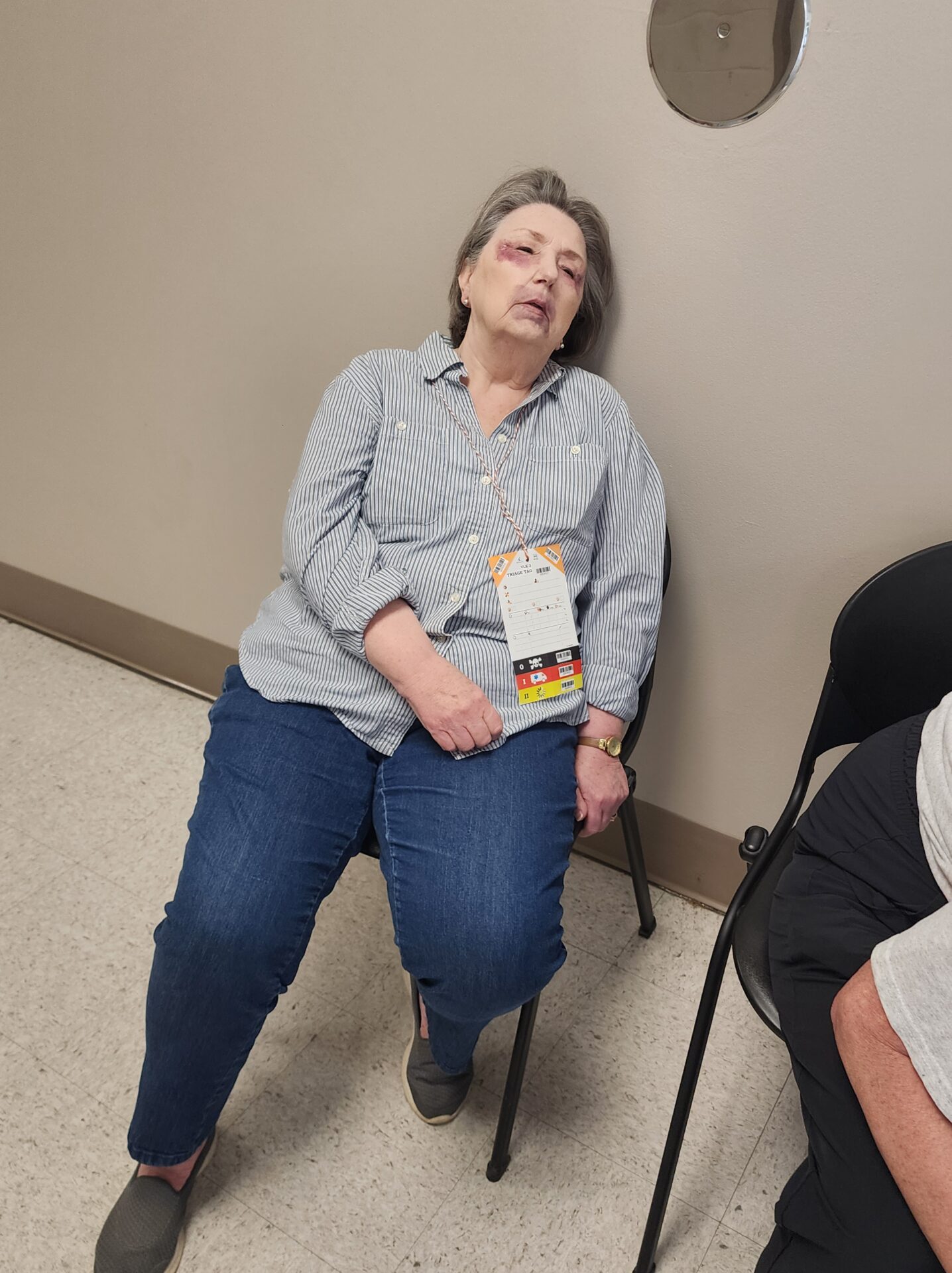 Meanwhile, volunteers assigned as “victims” were briefed in another building. Many were fitted with realistic prosthetic injuries and instructed on their roles. Some were even covered in dirt for added realism. When the simulation began, victims took their places in the field—some under debris, others in a crash simulator—and began acting out their scenarios.