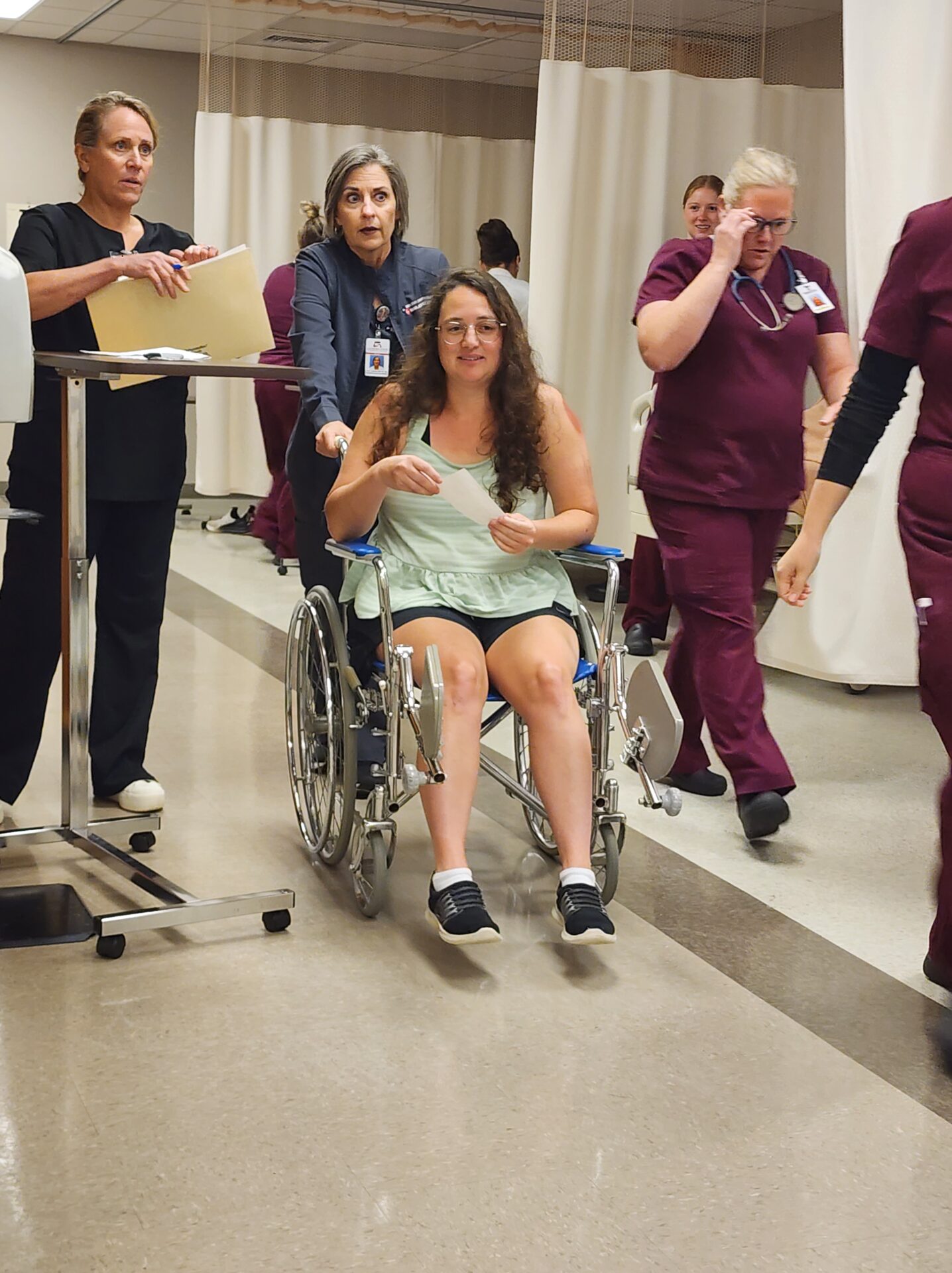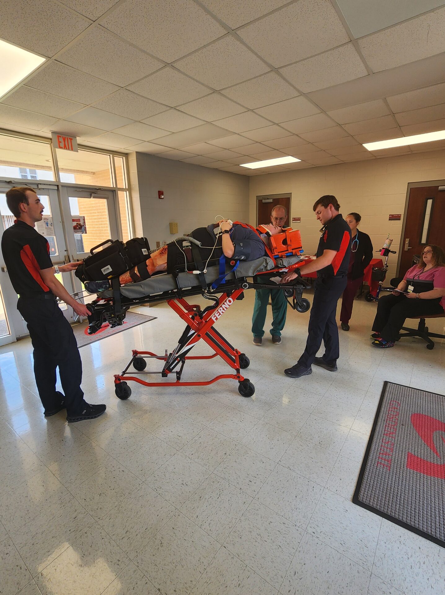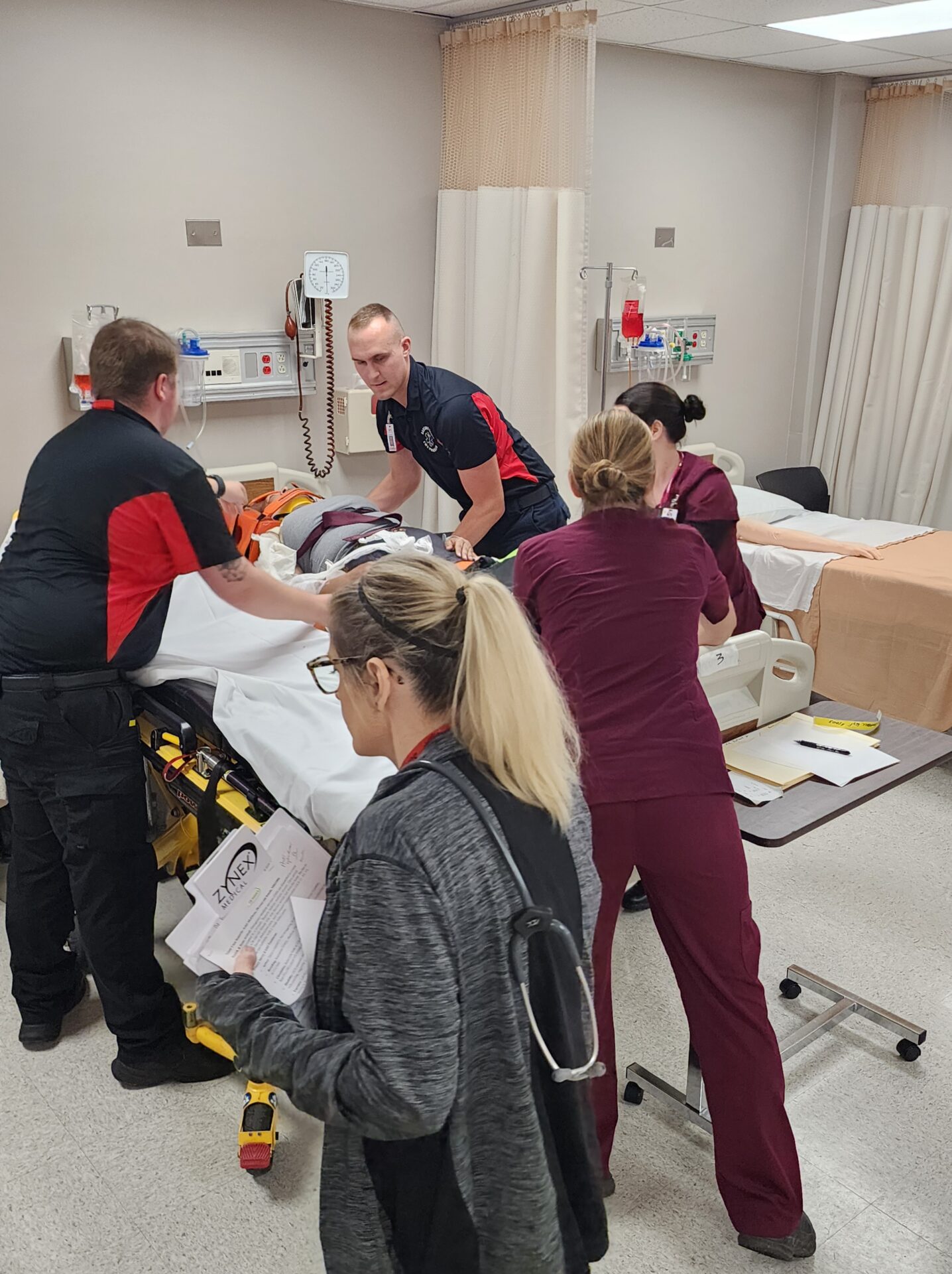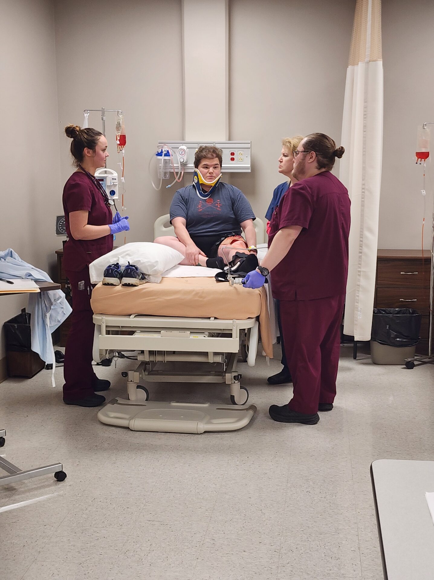 Students from various programs—Nursing, EMS, Radiology, Phlebotomy, and Laboratory Technology—were assigned realistic roles to reflect real-world interdisciplinary care teams. The exercise aimed to foster teamwork, critical thinking, and communication among the various healthcare disciplines.