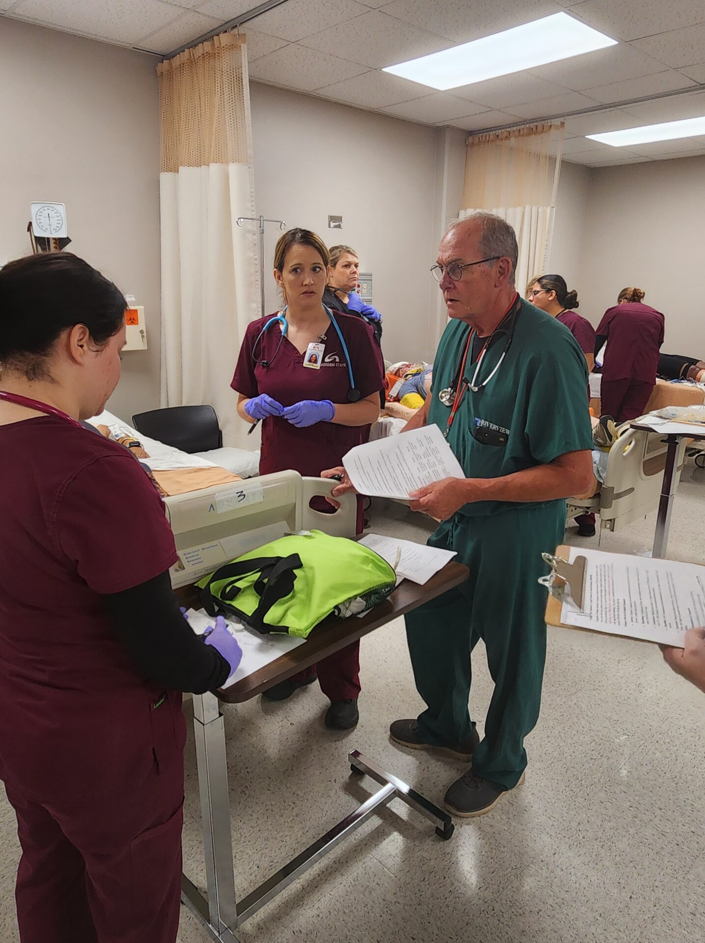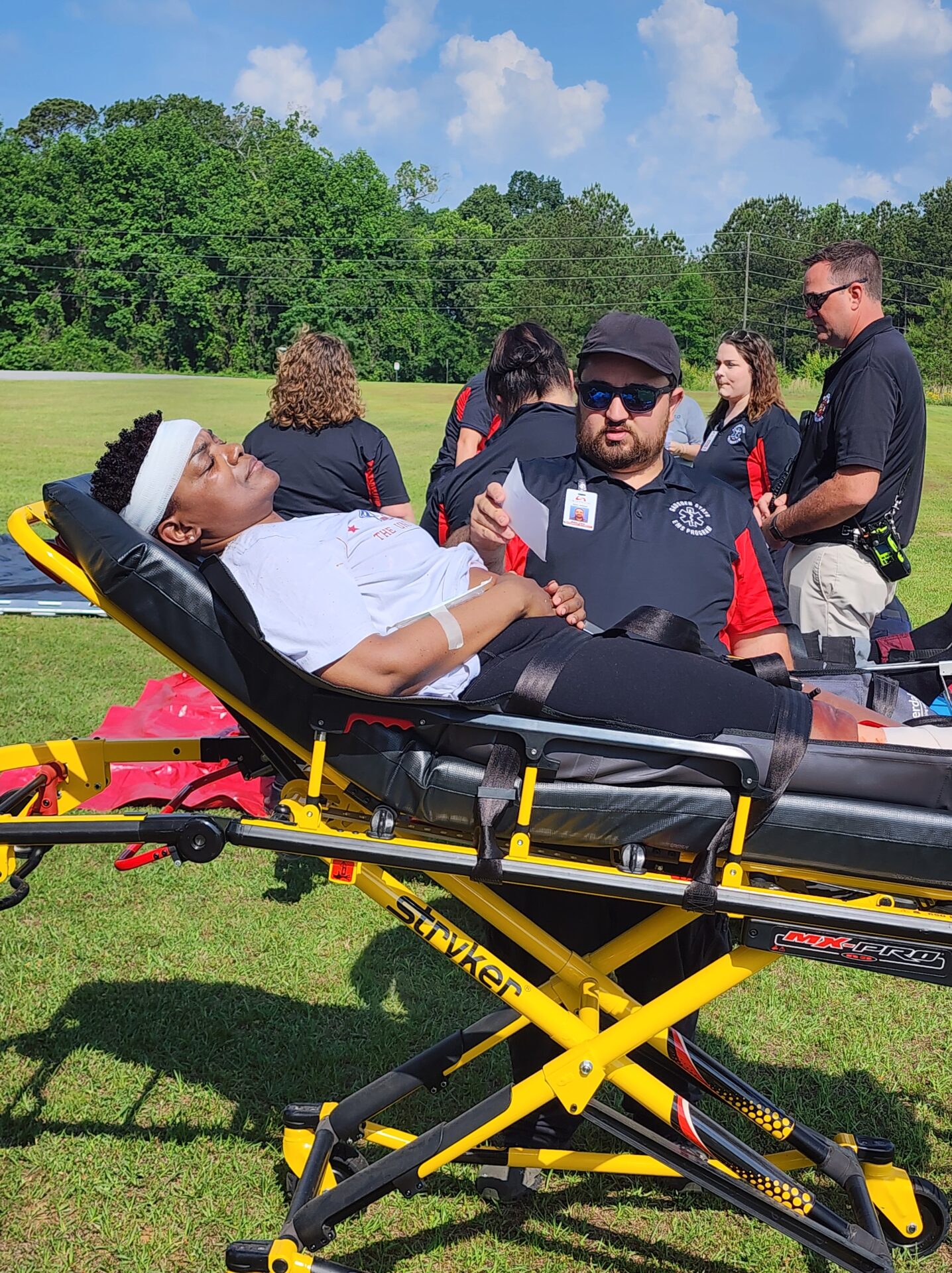 The simulation was led by Dr. Evelyn Lightsey, Simulations Coordinator at GSCC, and John Hollingsworth, EMS Director. Dr. Joey Battles, Dean of Health Sciences, also attended and oversaw the exercise. Command staff included Brian Selke (EMS Faculty), Safety Officer Colton Harden (Lt., Gadsden State Police), and Public Information Officer Austin Tillison (PR Director, GSCC).