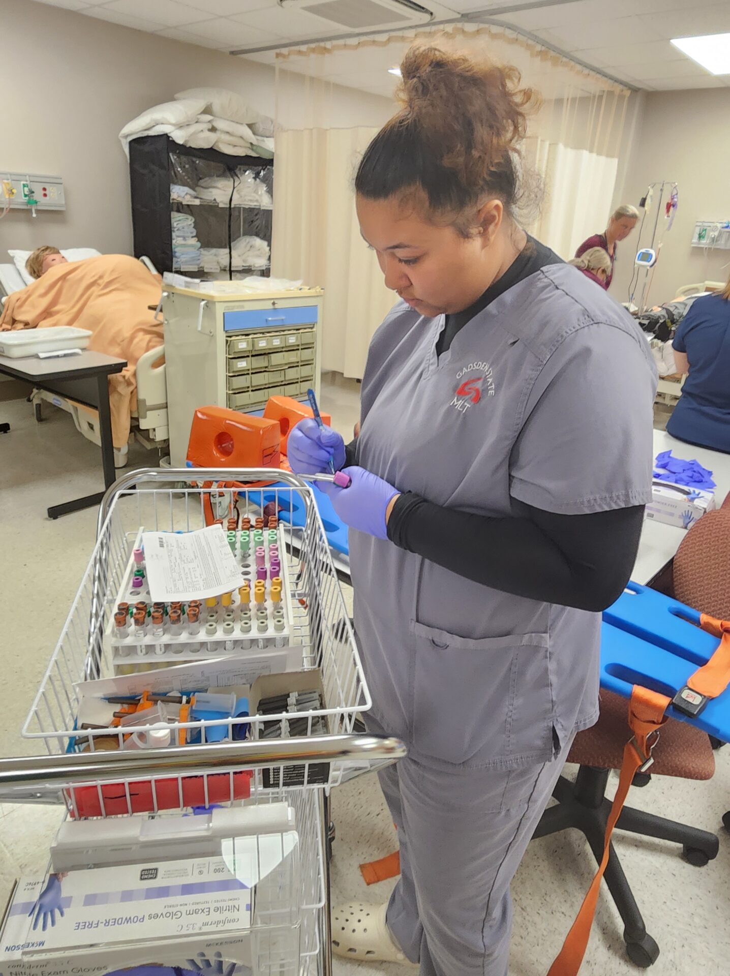 Students conducted triage, determined priorities for care, and coordinated patient transport. Real ambulances were used, and the Simulation Center of Gadsden State Community College’s Health Sciences Department was used for emergency rooms, labs, and imaging departments. Some students even practiced procedures like drawing blood on prosthetic limbs to simulate real treatment while maintaining safety for the actors.