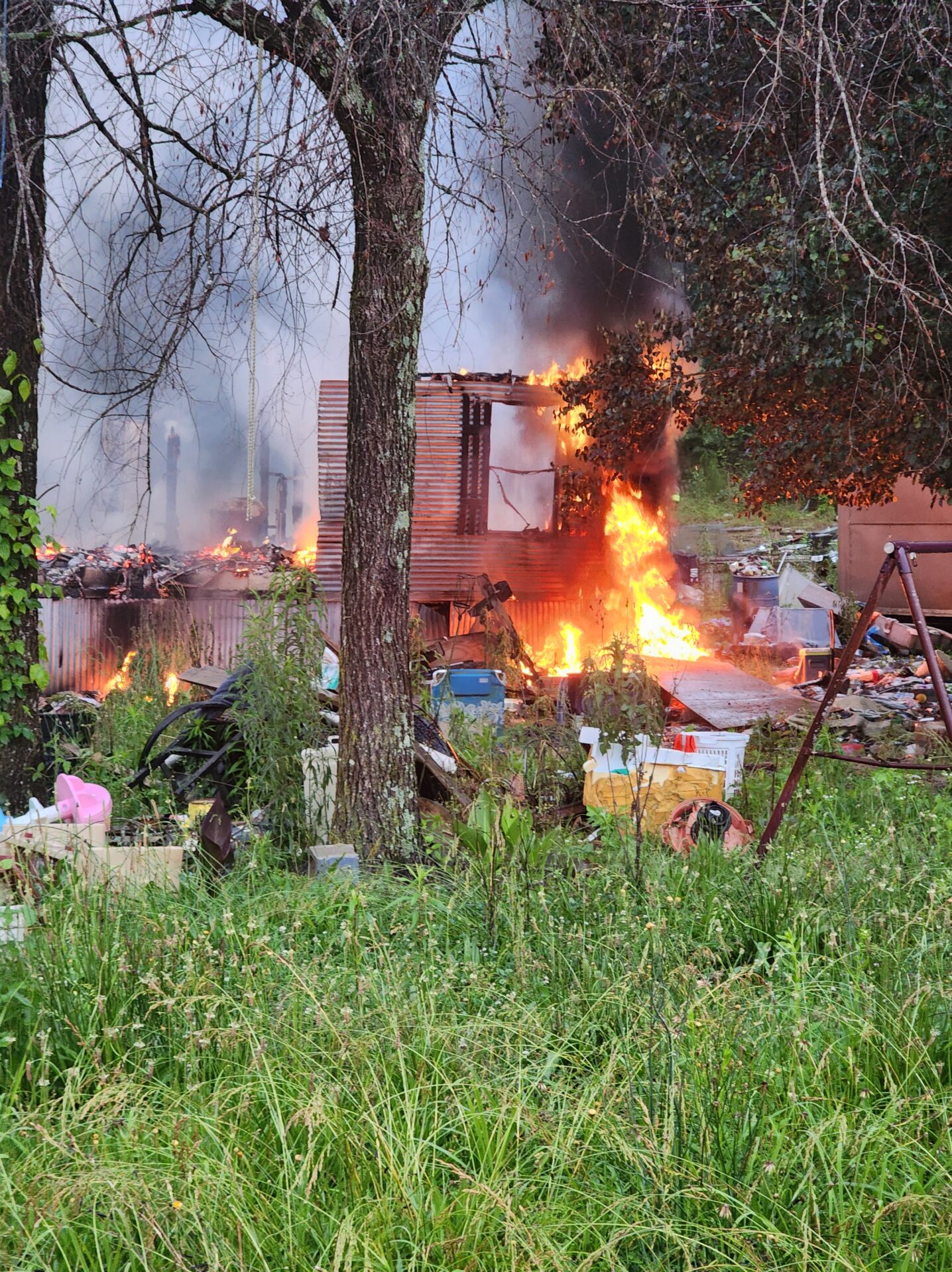 Unfortunately, due to the advanced stage of the fire when it was discovered, the structure was a total loss. The good news: no injuries have been reported.