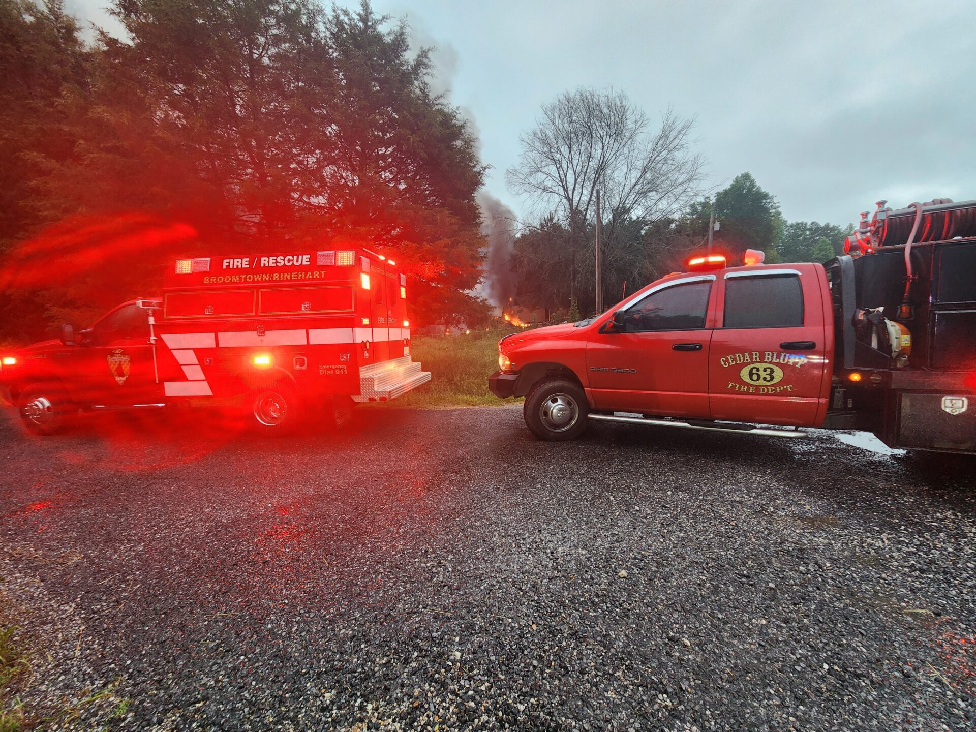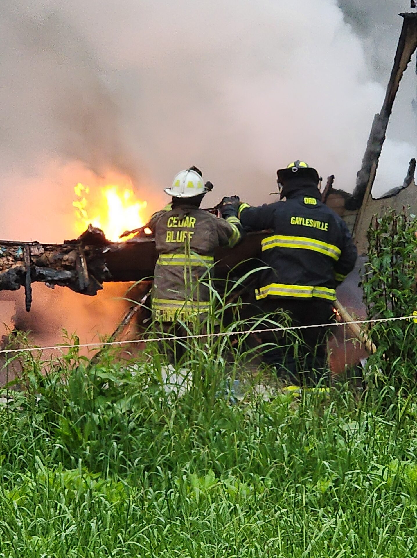 When first responders arrived on scene, the house was already fully engulfed in flames. Fire units from Gaylesville, Cedar Bluff, Broomtown/Rinehart, Tuckers Chapel, the Cherokee County Sheriff’s Office, and Atrium Floyd EMS all responded quickly to the call.