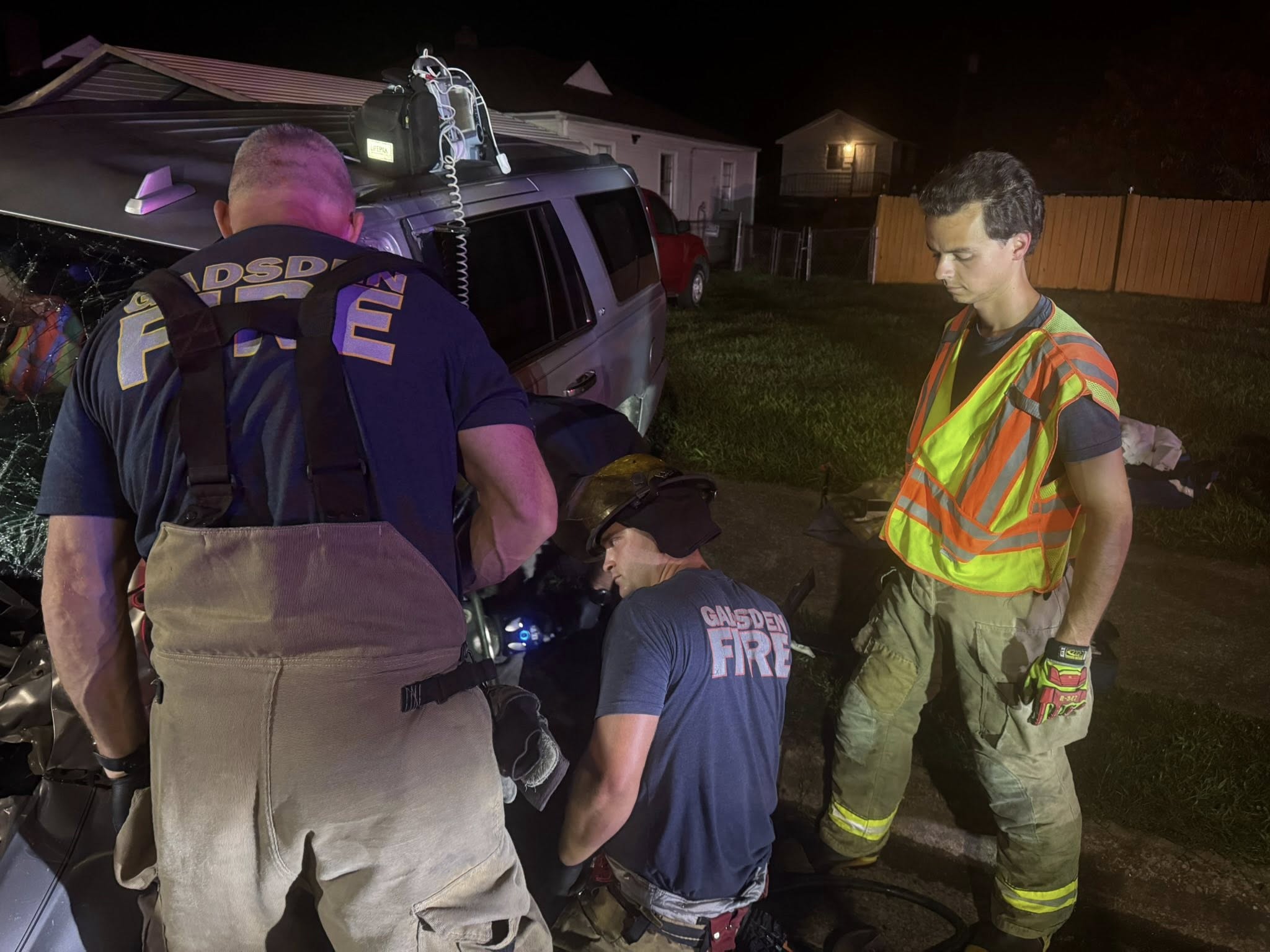 Emergency units on scene included Quint 4, Rescue 1, Battalion 2, and Battalion 3, along with the Gadsden Police Department, Advantage EMS, and A-Med Ambulance Service. Firefighters utilized hydraulic rescue tools to extricate the victims from the wrecked vehicle.