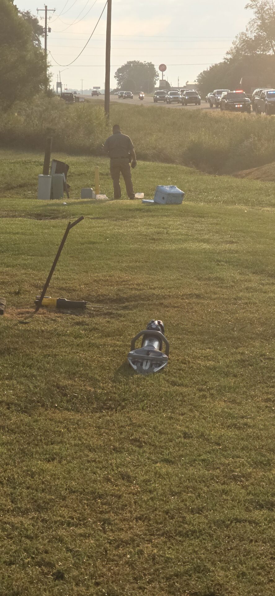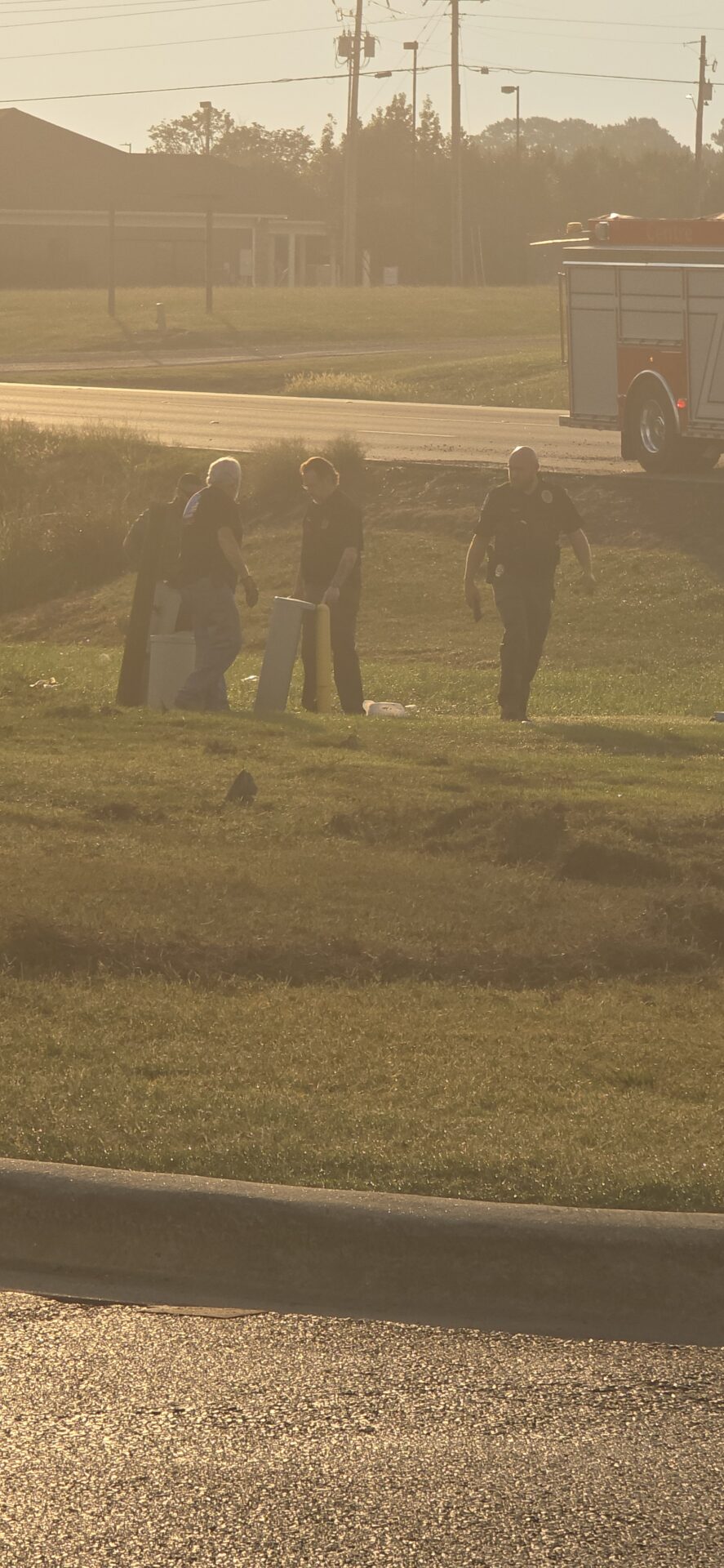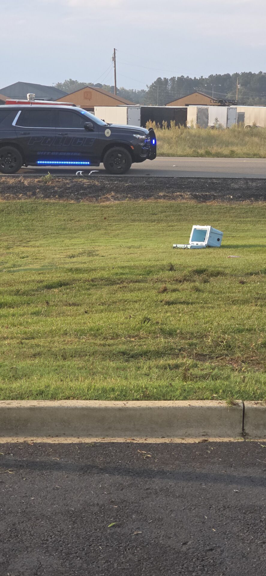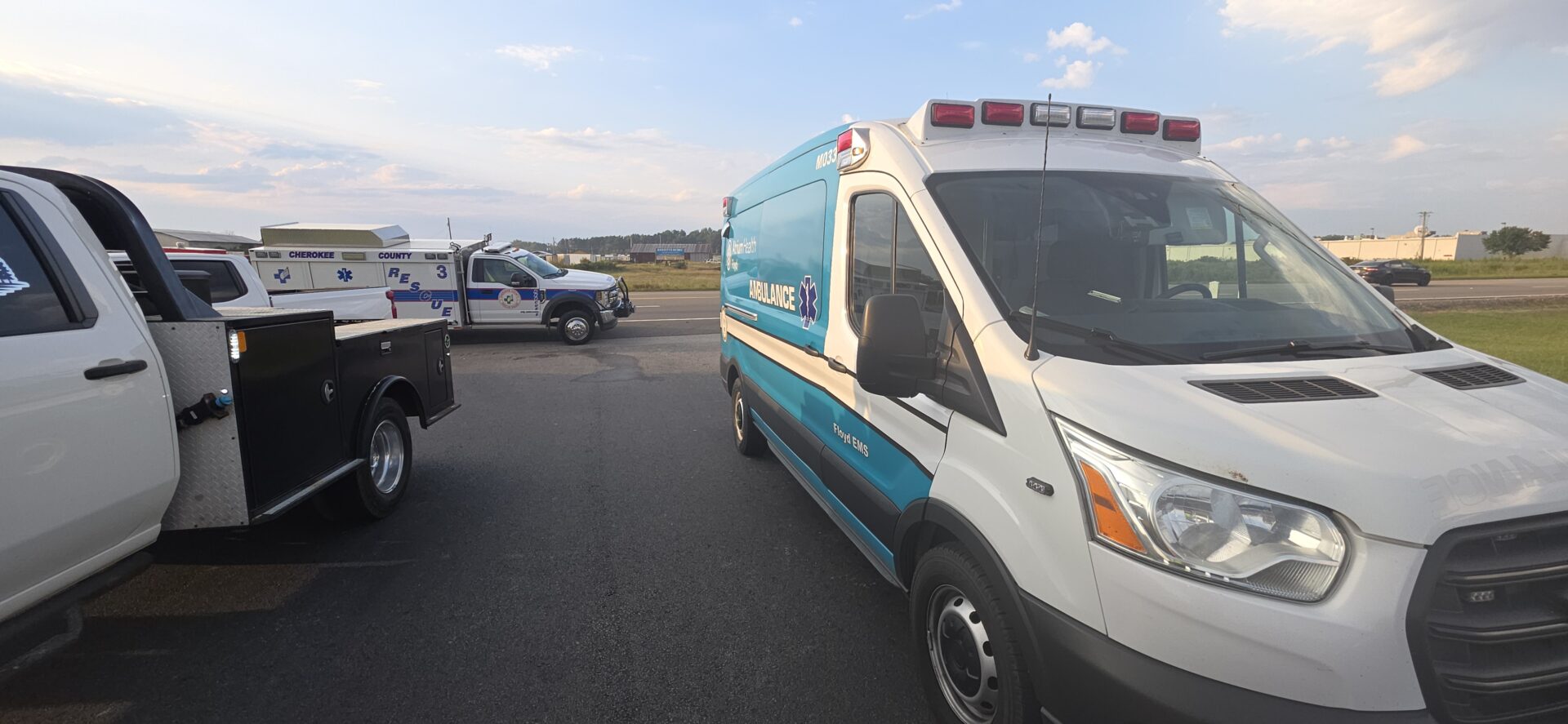 According to reports, a silver Dodge truck traveling toward Highway 411 left the roadway, lost control, and overturned down a steep embankment, coming to rest on its side at the base of the Emblem Bank sign. The driver was trapped inside and had to be extracted by emergency crews. He was conscious and able to communicate with first responders before being treated at the scene and transported by Atrium Floyd EMS to an area hospital for further evaluation.