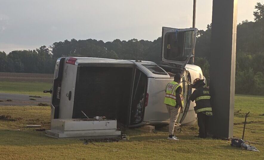 CENTRE – An early morning rollover accident in Centre sent one man to the hospital Wednesday. The crash happened shortly before 7:30 a.m. on the Clarence E. Chesnut Jr. Bypass at the Emblem Bank property.