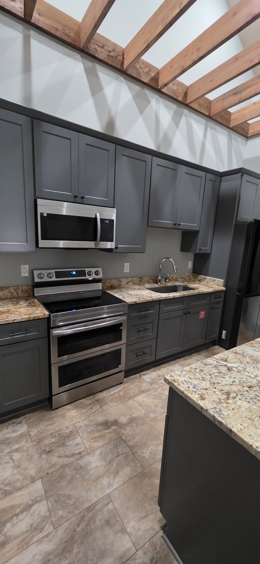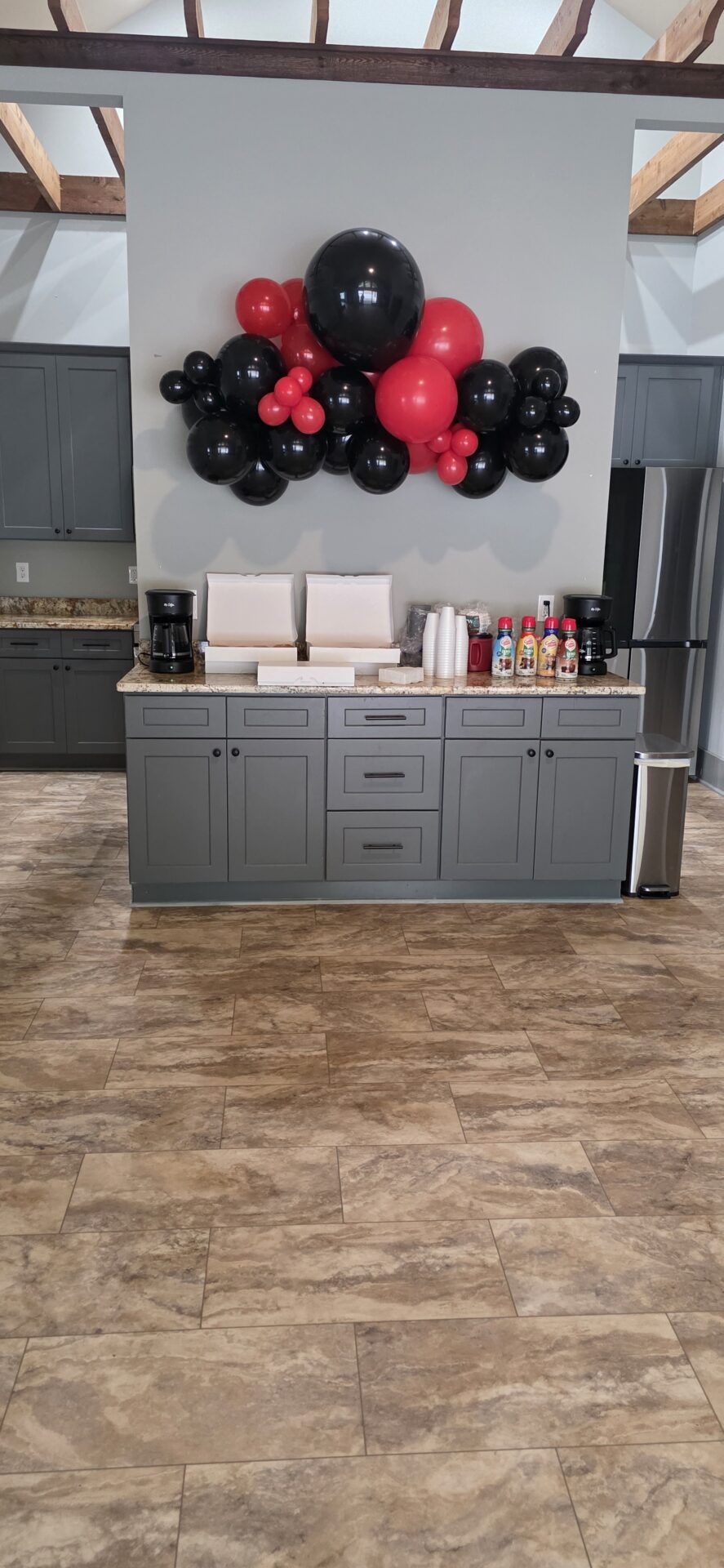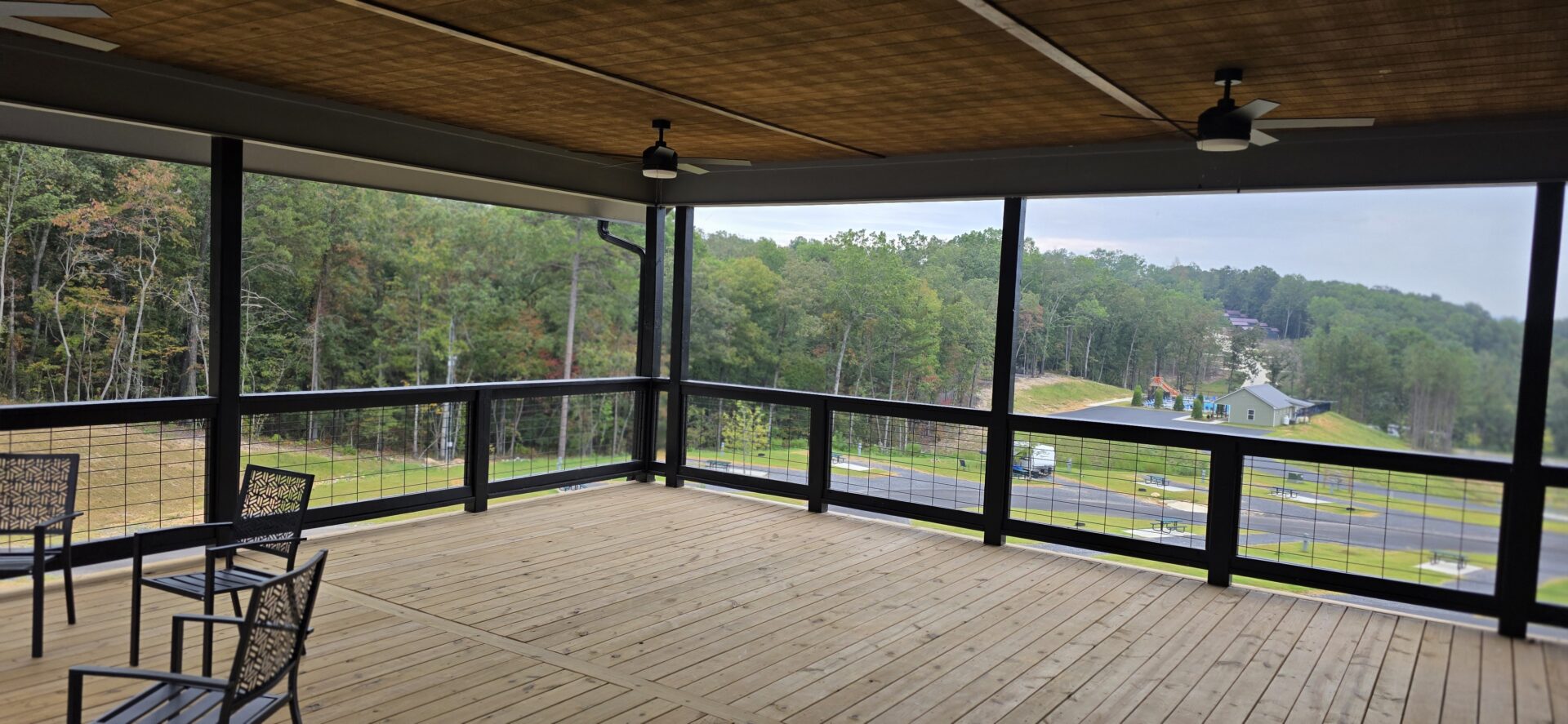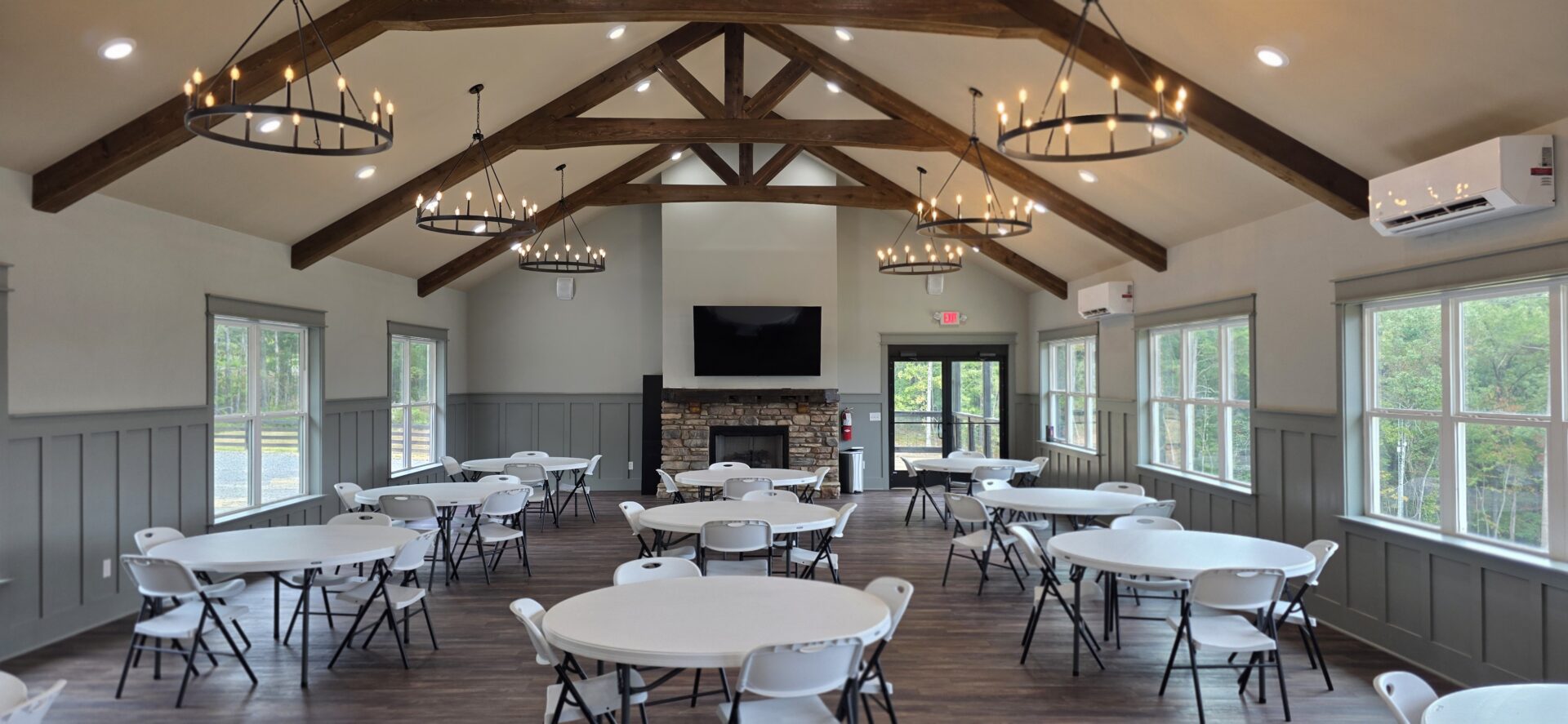The Venue features comfortable seating for 90 guests, with space to accommodate up to 120. Inside, a full kitchen makes catering seamless, while future plans include an outdoor kitchen and grill area on the balcony, complete with a gas fireplace—perfect for gatherings that flow from indoors to the scenic outdoors.