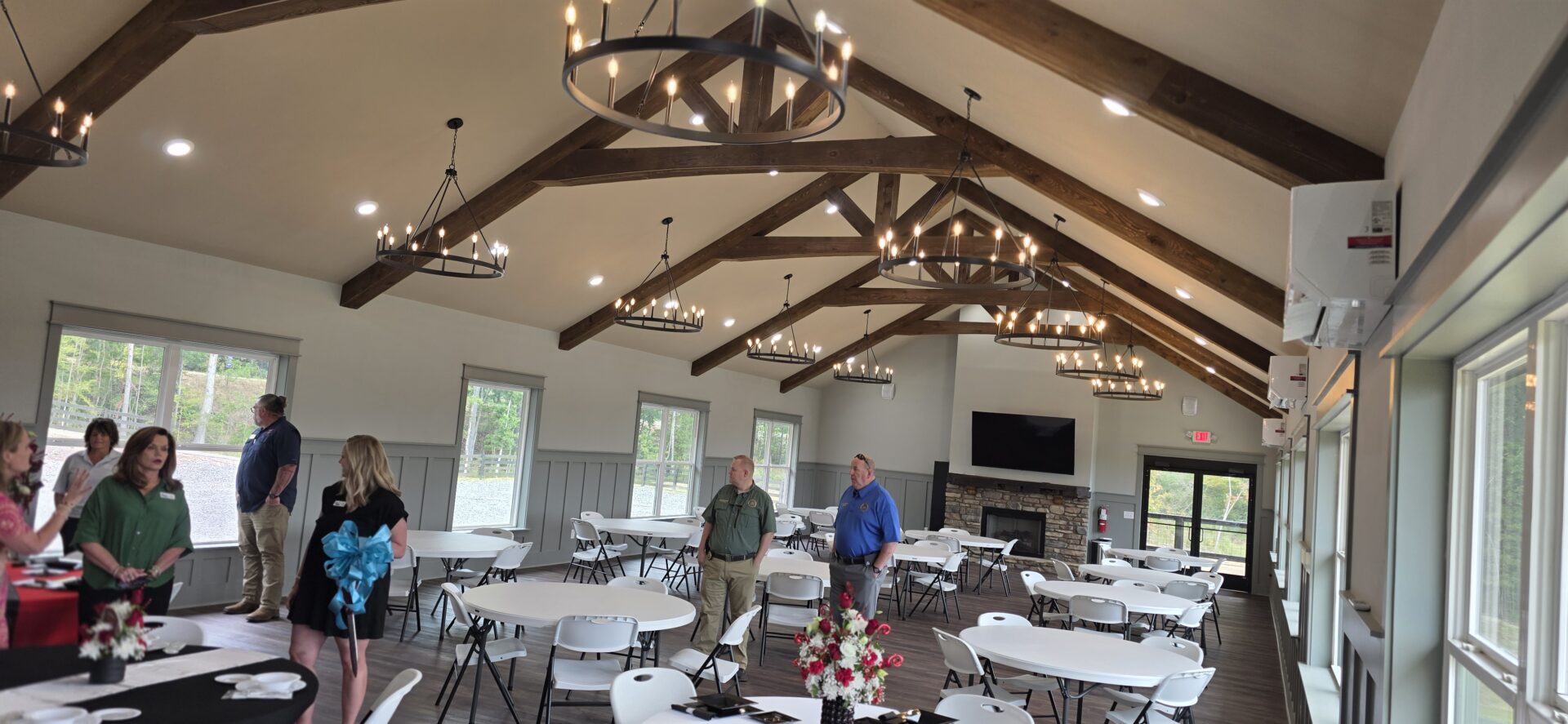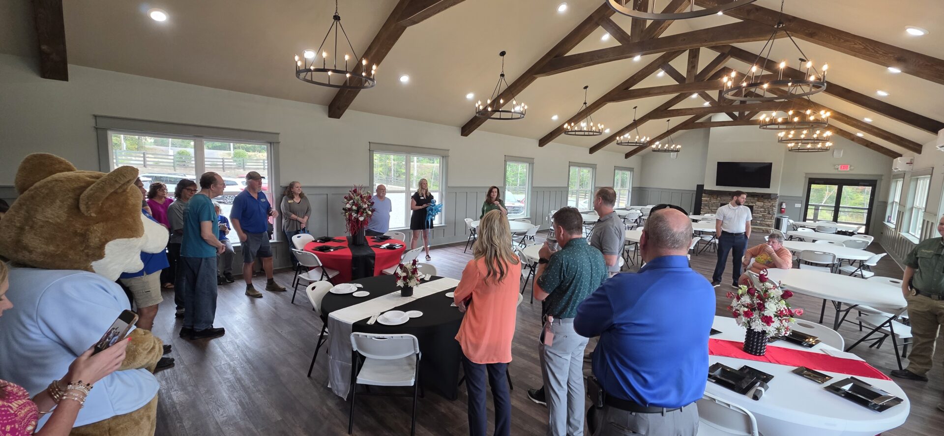 Unveiled with a ribbon cutting hosted by the Cherokee Chamber of Commerce on September 24, the Venue introduces a sophisticated new option for weddings, reunions, corporate gatherings, holiday parties, and more. Guests at the opening were treated to coffee, doughnuts, and a guided tour of the beautiful facility, which owner Rob Brown says will serve both resort visitors and the public.