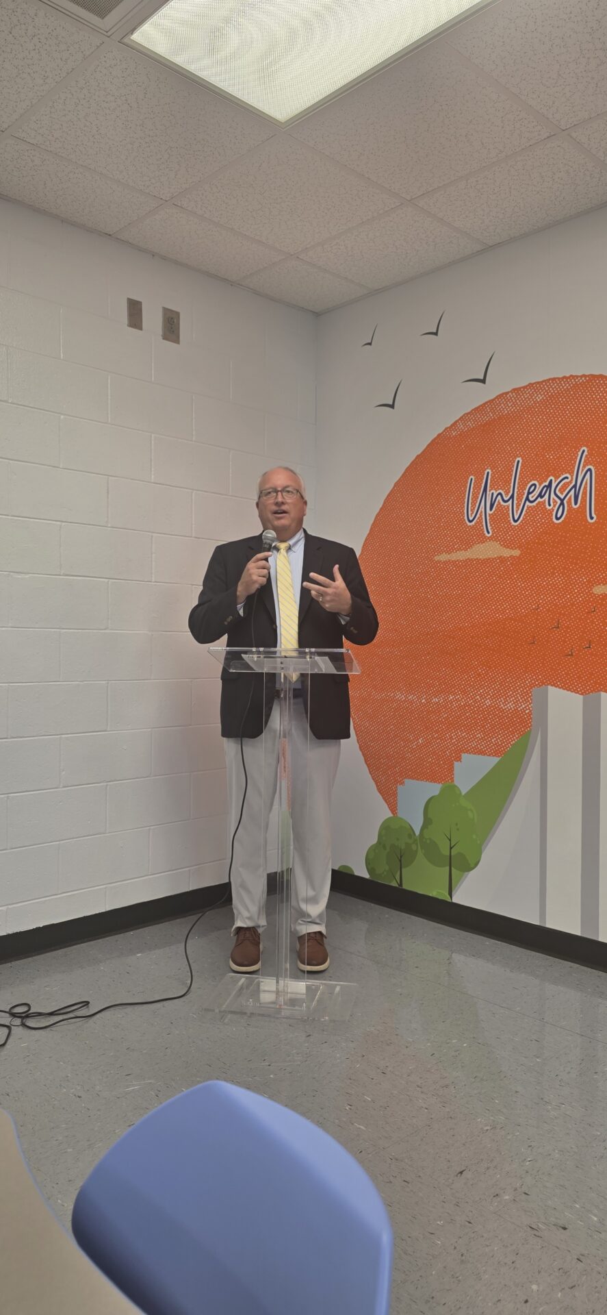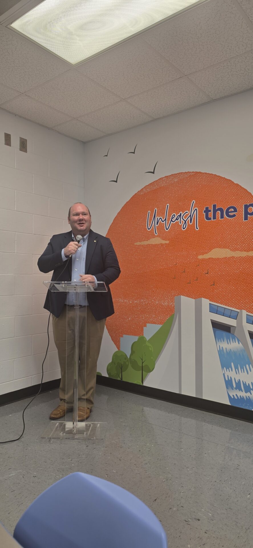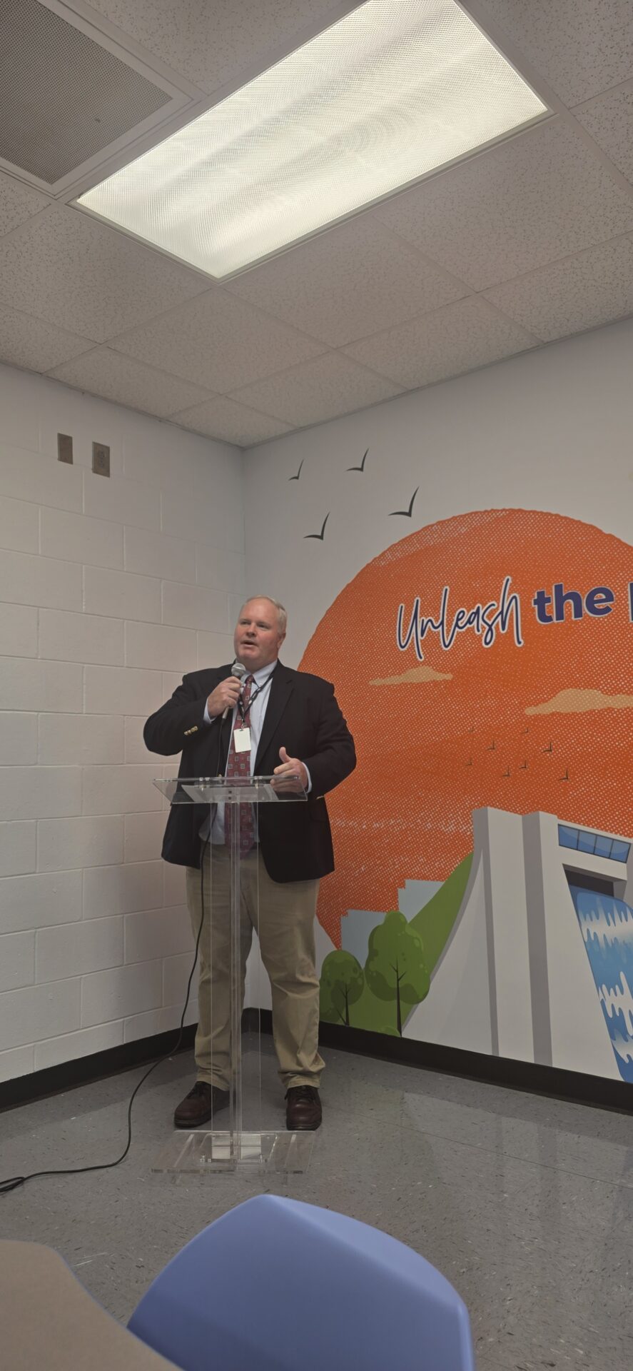 Cherokee County Schools Superintendent Michael Welsh followed East, emphasizing the importance of partnerships in advancing STEM education. He recognized the collaboration between the school system, TVA, the Cal Ripken, Sr. Foundation, Gadsden State, and Jacksonville State University. Welsh thanked all partners on behalf of the Board of Education, calling the strong turnout at the event a sign of the community’s commitment to preparing students for the future.