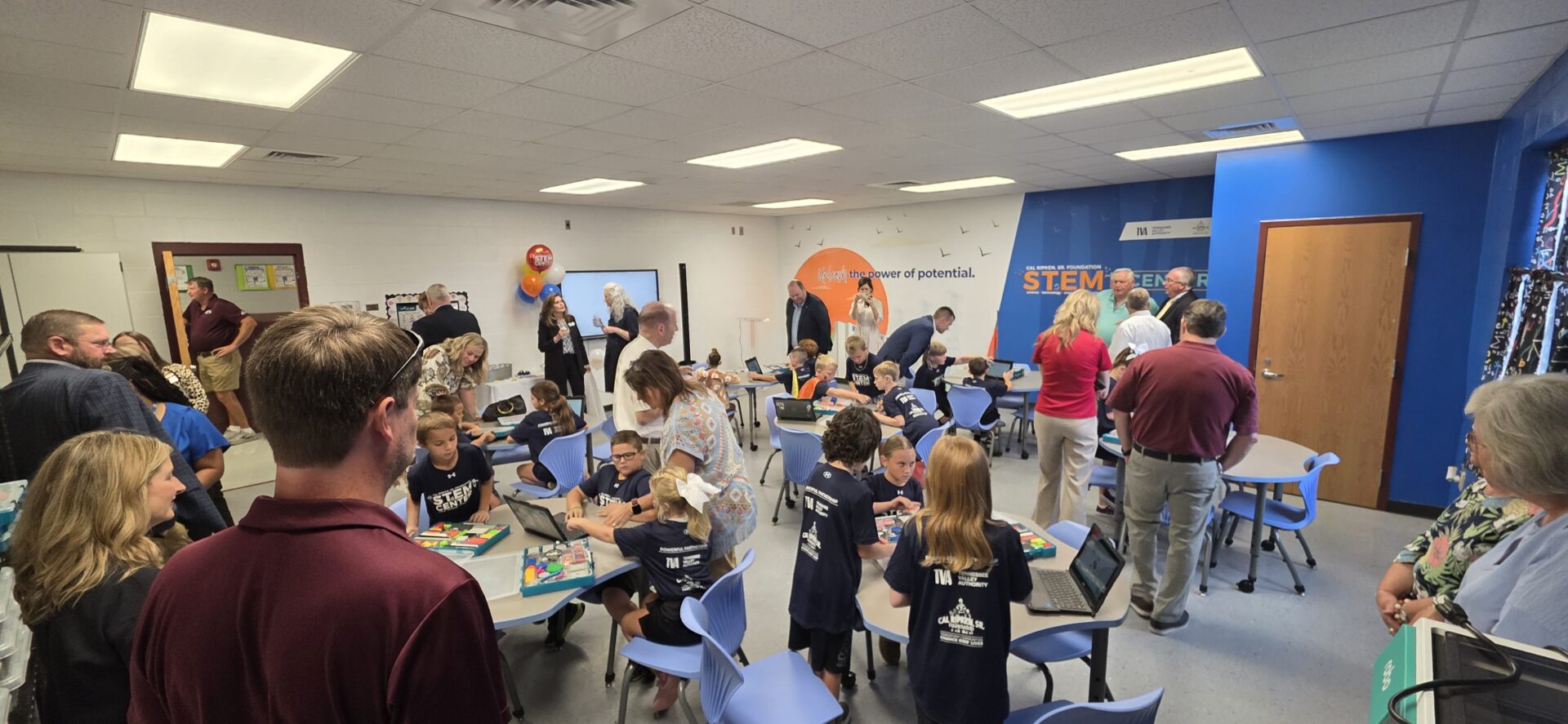 Following the formal ceremony, Sand Rock Elementary students gave attendees a firsthand look at what the STEM center has to offer. Third-graders demonstrated small robots they had built and explained how computer programs guide them through the process. They said they enjoyed the hands-on nature of the lessons and looked forward to opportunities that could one day connect to careers in technology and engineering.