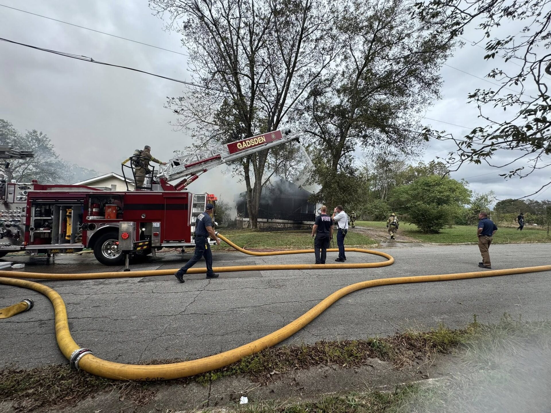 Responding units included Quint 4, Engine 1, Engine 5, Rescue 1, Training Officer 1, Fire Marshal 1, Battalion 3, Battalion 2/Public Information Officer, and unit 42. Advantage EMS and the Gadsden Police Department’s Animal Control Division also assisted at the scene.