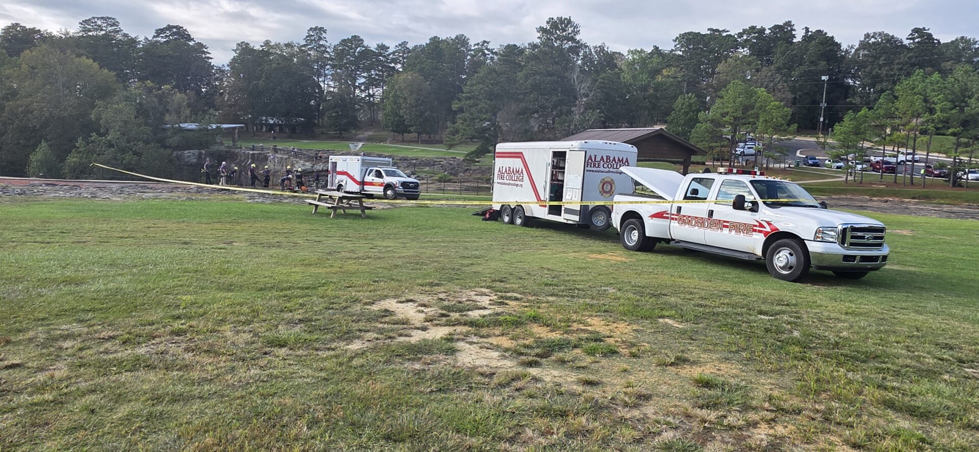 GADSDEN — Firefighters from the Gadsden Fire Department spent Thursday, October 9th and Friday, October 10th, engaged in intensive rope rescue training exercises at Noccalula Falls Park. The two-day session focused on both classroom instruction and hands-on field training, designed to certify firefighters in Awareness and Operations levels of high-angle and rope rescue.