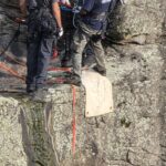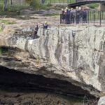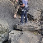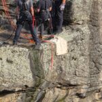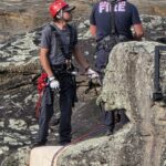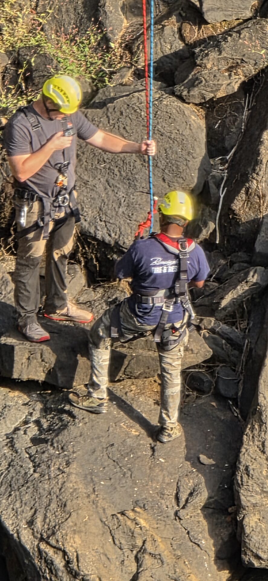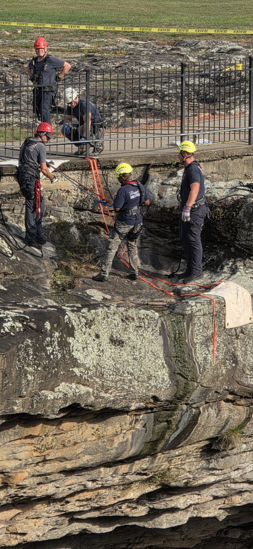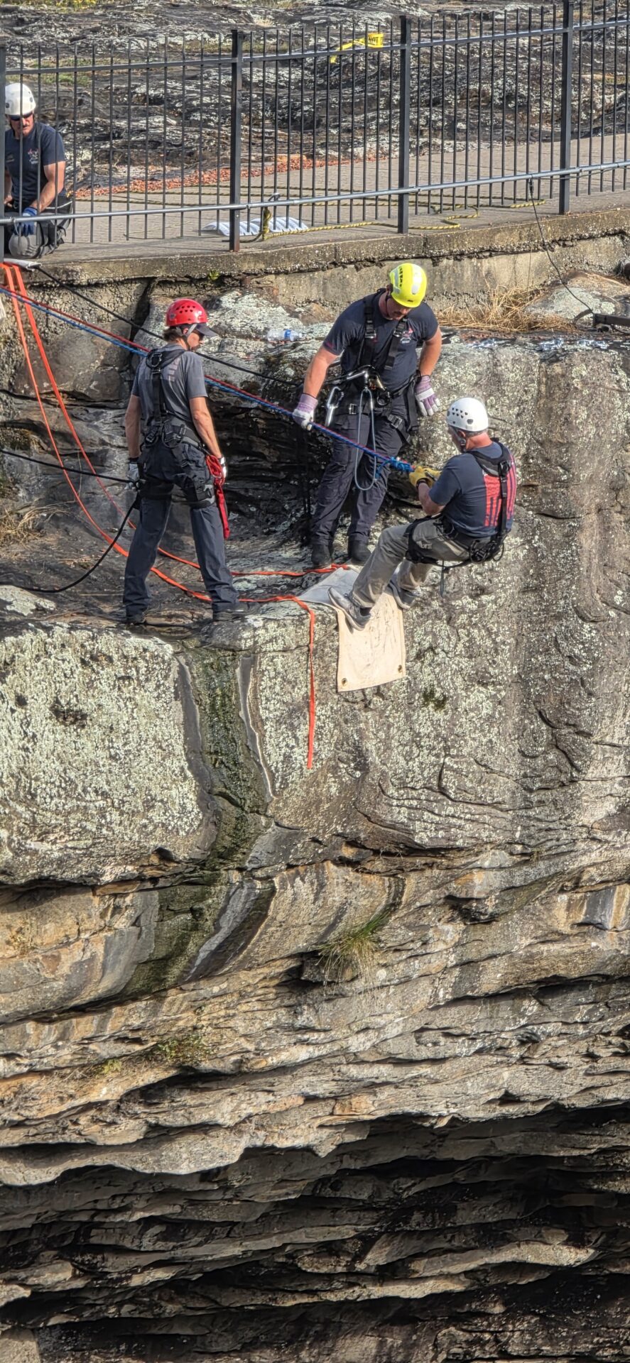 Later in the afternoon, the training moved to the area beside the iconic 90-foot waterfall, where firefighters rappelled down the cliff face into the gorge below — a demanding exercise testing both technical precision and mental focus.