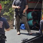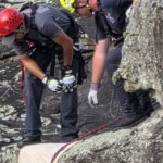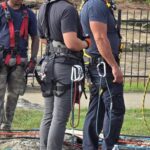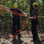 High-angle rope rescue, typically defined as work performed on slopes of 60 degrees or greater, requires precise coordination, technical skill, and extensive safety knowledge. During the course, firefighters learned to use a variety of specialized equipment and systems, including mechanical advantage pulleys, rappelling and belay devices, and Stokes baskets for patient transport.
