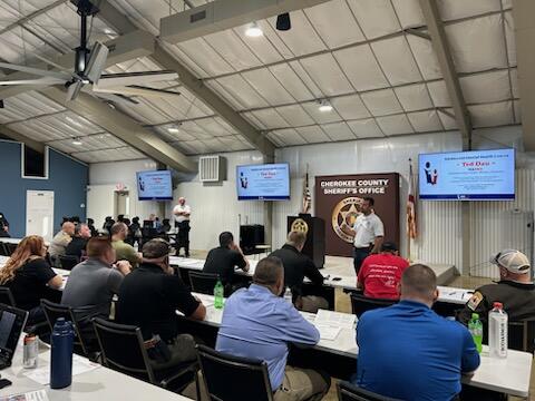 This week, School Resource Officers from Cherokee County and surrounding counties gathered at the Cherokee County Sheriff’s Office Training Center for training. The training provided by NASRO – the National Association of School Resource Officers – focused on mental health. The course, Adolescent Mental Health Training, helps SROs identify and respond to students who have or are suspected of having mental health needs and to develop skills for appropriately responding.