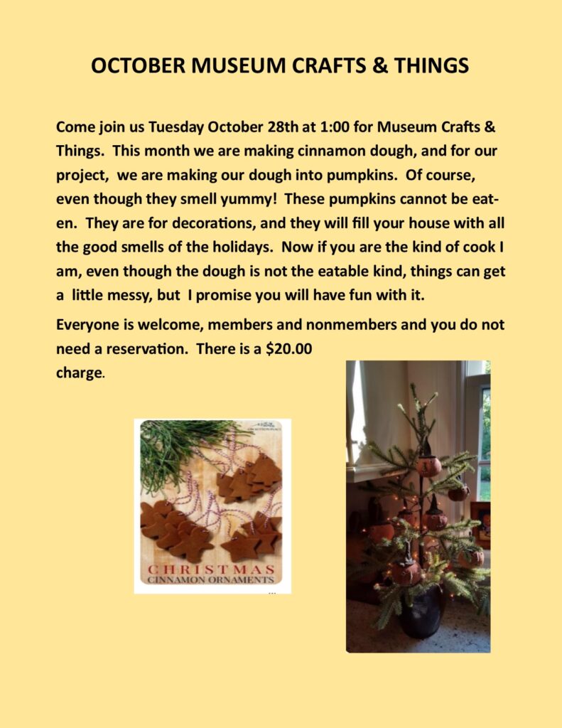 The Cherokee County Historical Museum will host its monthly Museum Crafts & Things workshop on Tuesday, October 28th at 1:00 p.m.