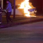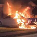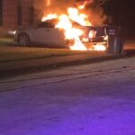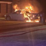 The blaze was reported just before 4:30 a.m. when flames were spotted coming from the rear of a vehicle parked near a residence. According to reports, the owner was able to move the car away from the structure before the fire spread, but the vehicle was soon fully engulfed in flames.