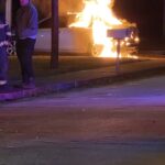 Several nearby residents, awakened by the noise and flashing lights, gathered outside—some wrapped in blankets—to watch as firefighters worked to bring the blaze under control.