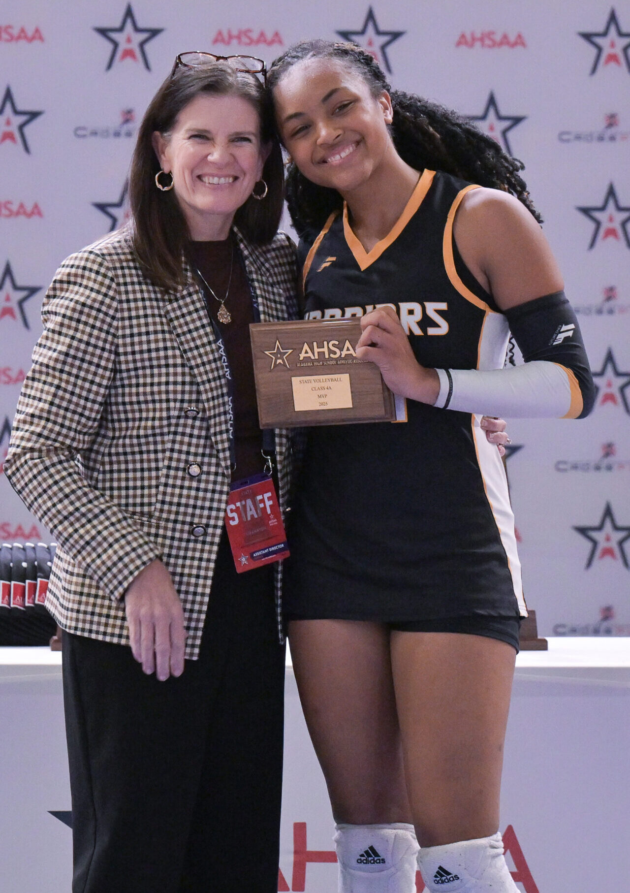Nevaeh Gaidurgis led the Lady Warriors (51-9) with 22 kills and eight digs. She earned the 4A state tournament’s Most Valuable Player honor. Jolie Alexander added 15 kills. Ava Haygood posted 11 kills and 14 digs. Ellisan Givens led all players with 30 digs, and Macy Lea dished out 44 assists.