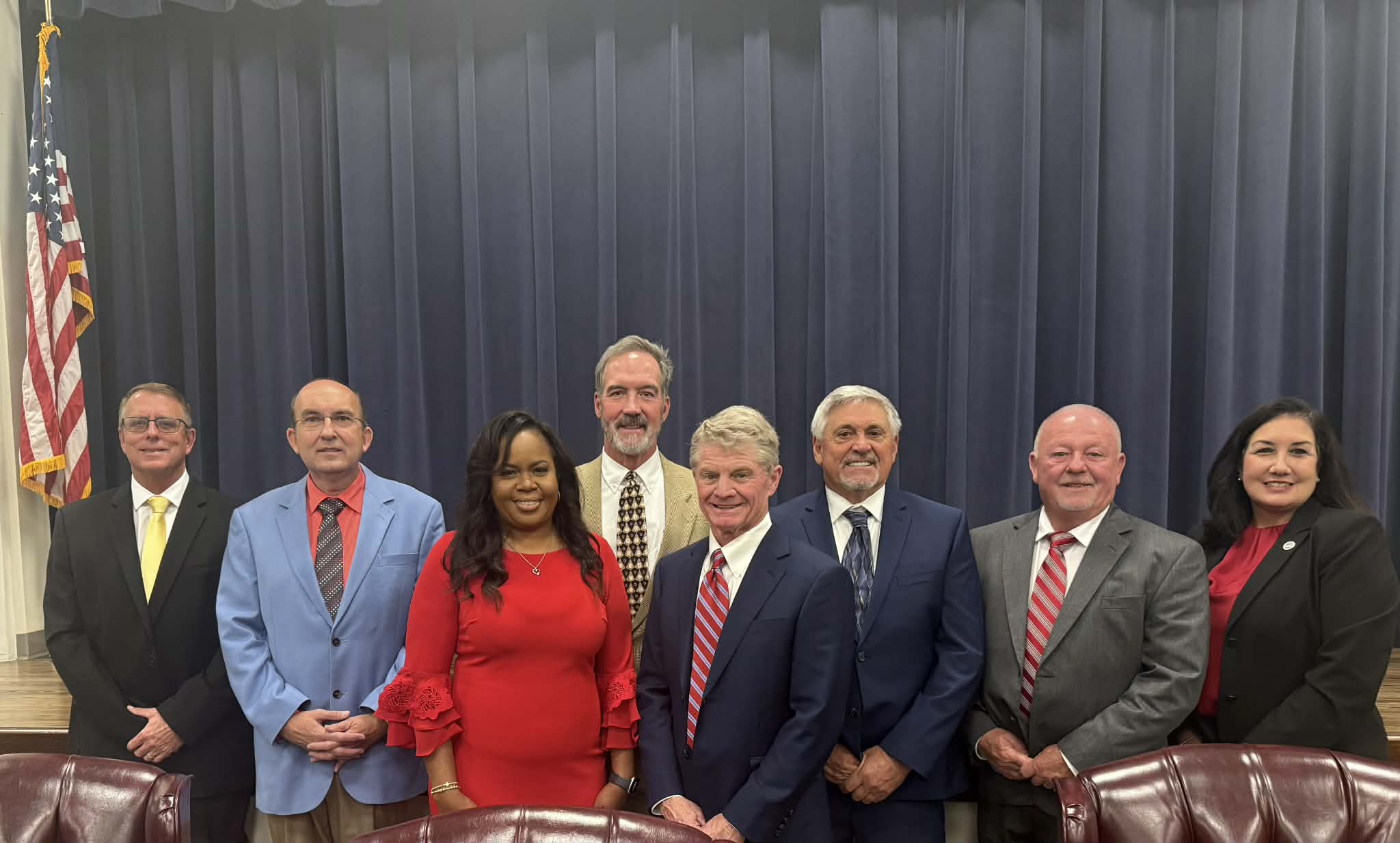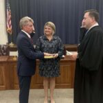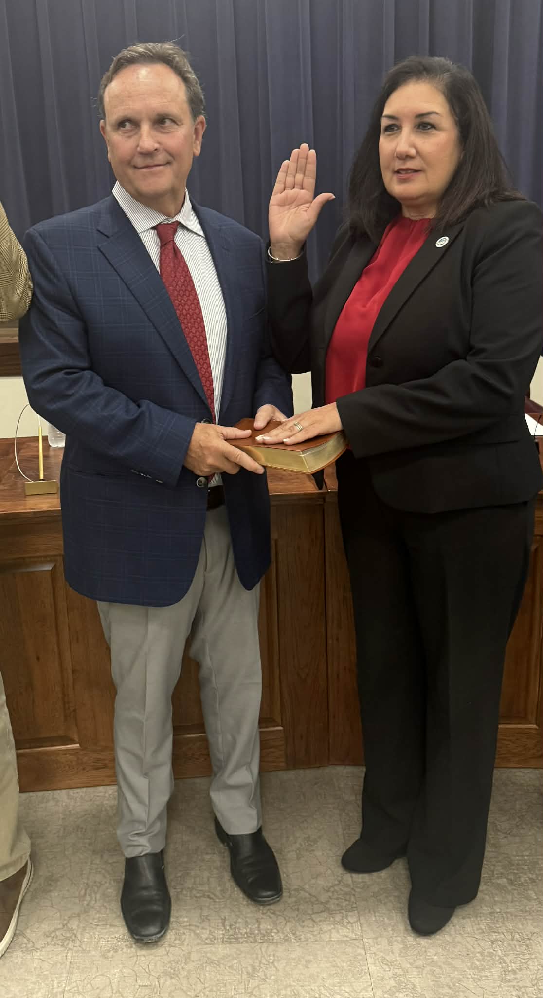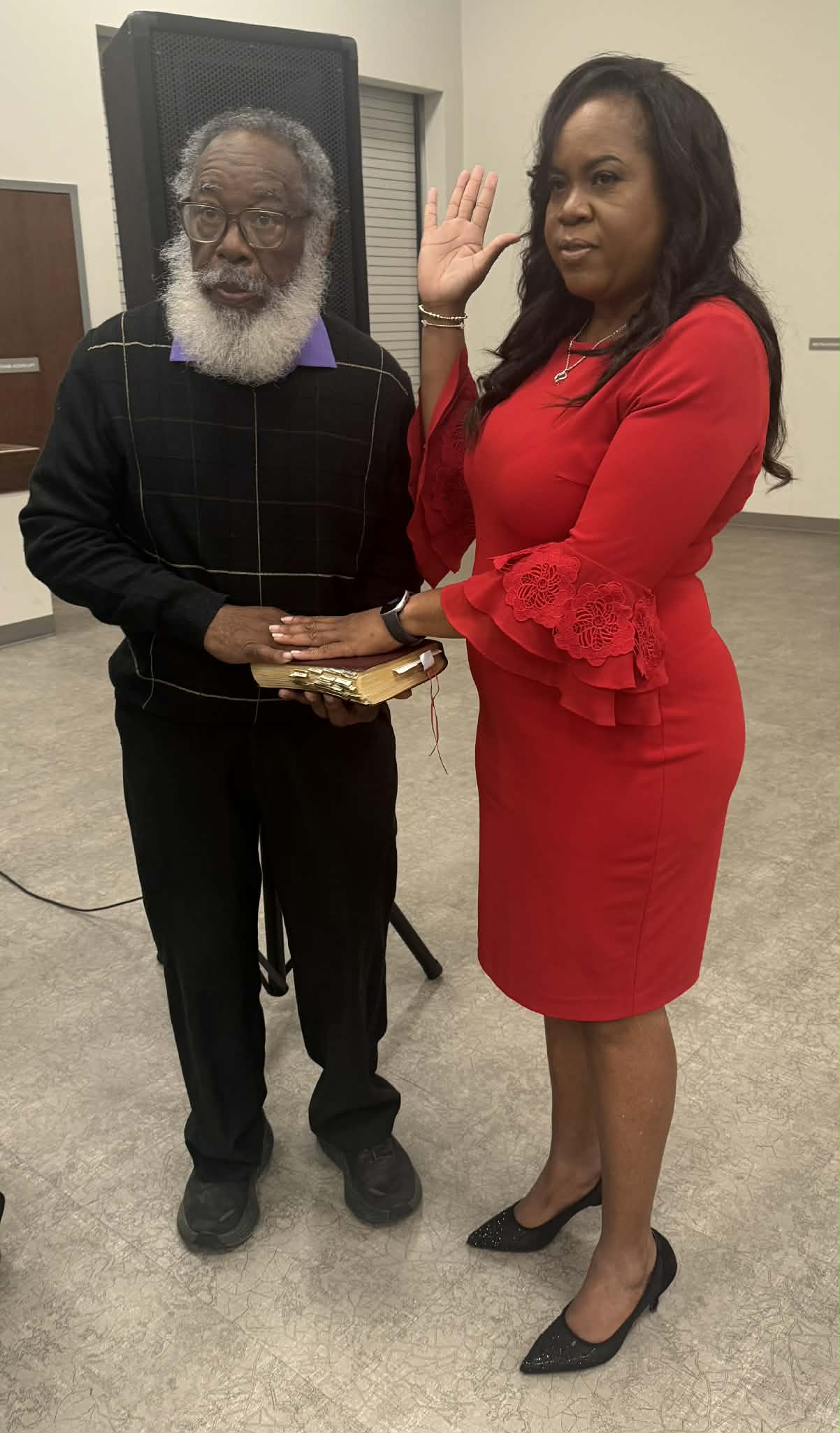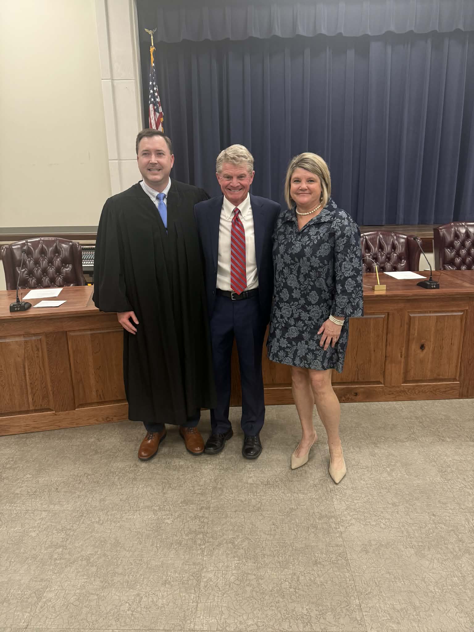 Judge Wesley Mobley presided over the ceremony in the absence of Judge Dean Buttram. Mayor Jay Howell took the Oath of Office with his wife, Tonya, holding the Bible. Judge Mobley then administered the oath to all seven council members together.